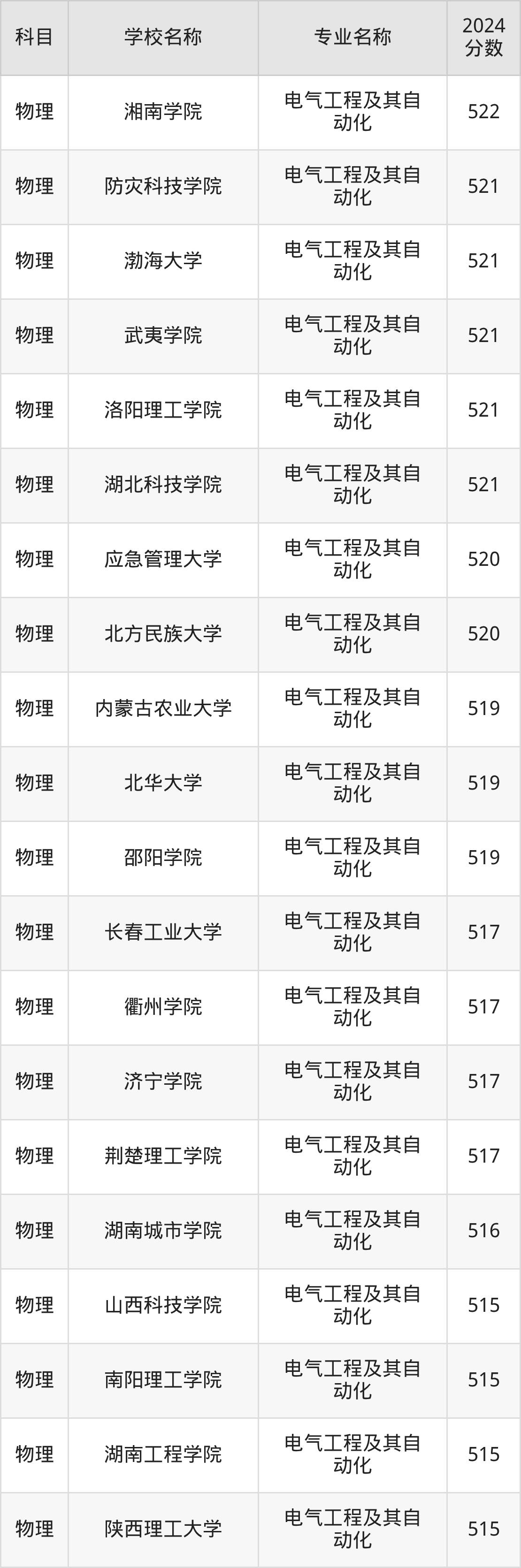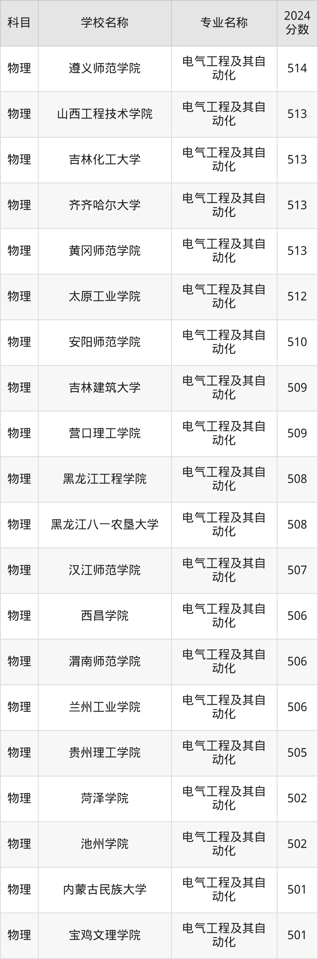| 赣南科技学院 | 电气工程及其自 动化 | 505 |