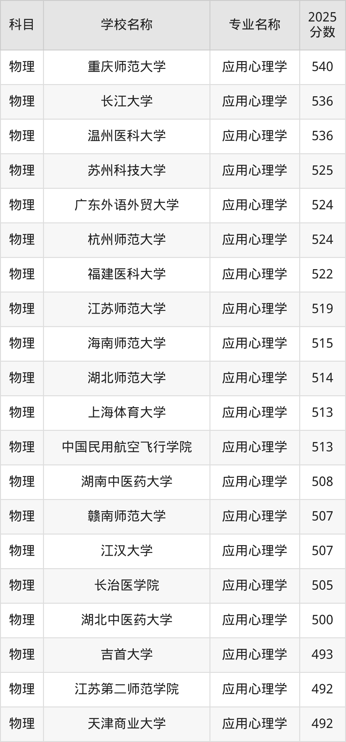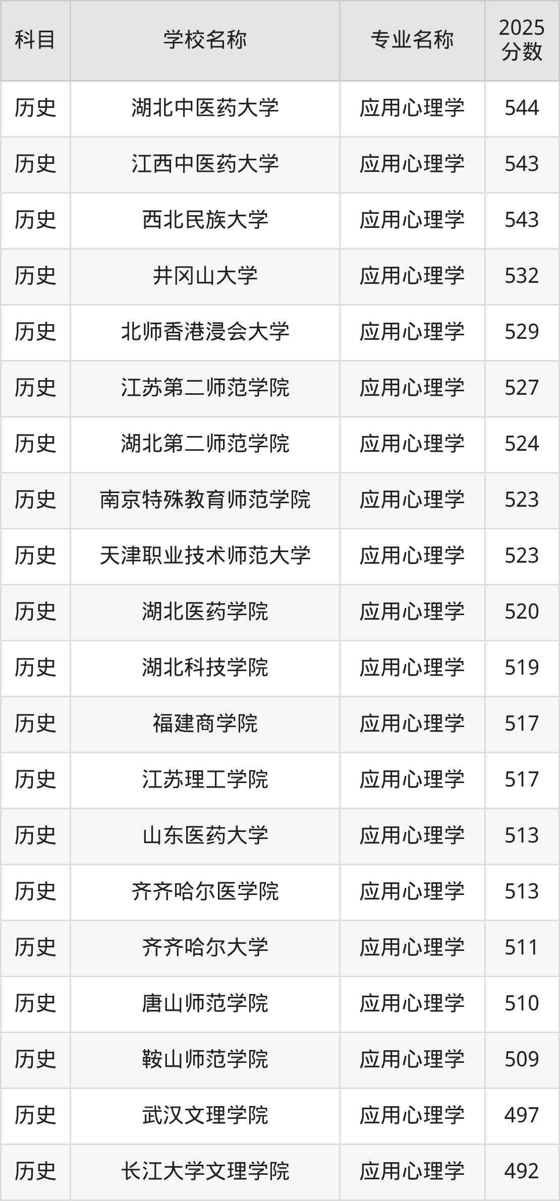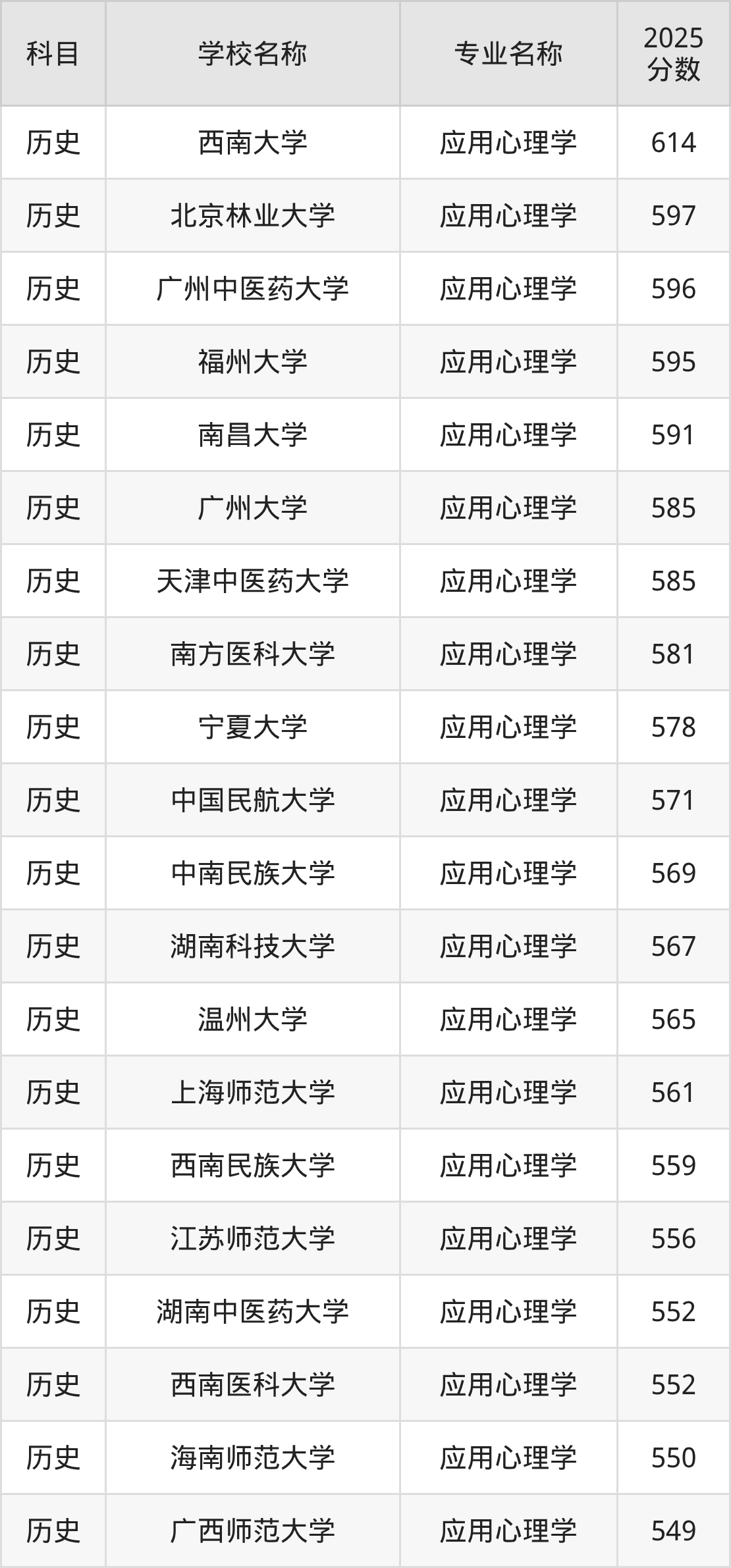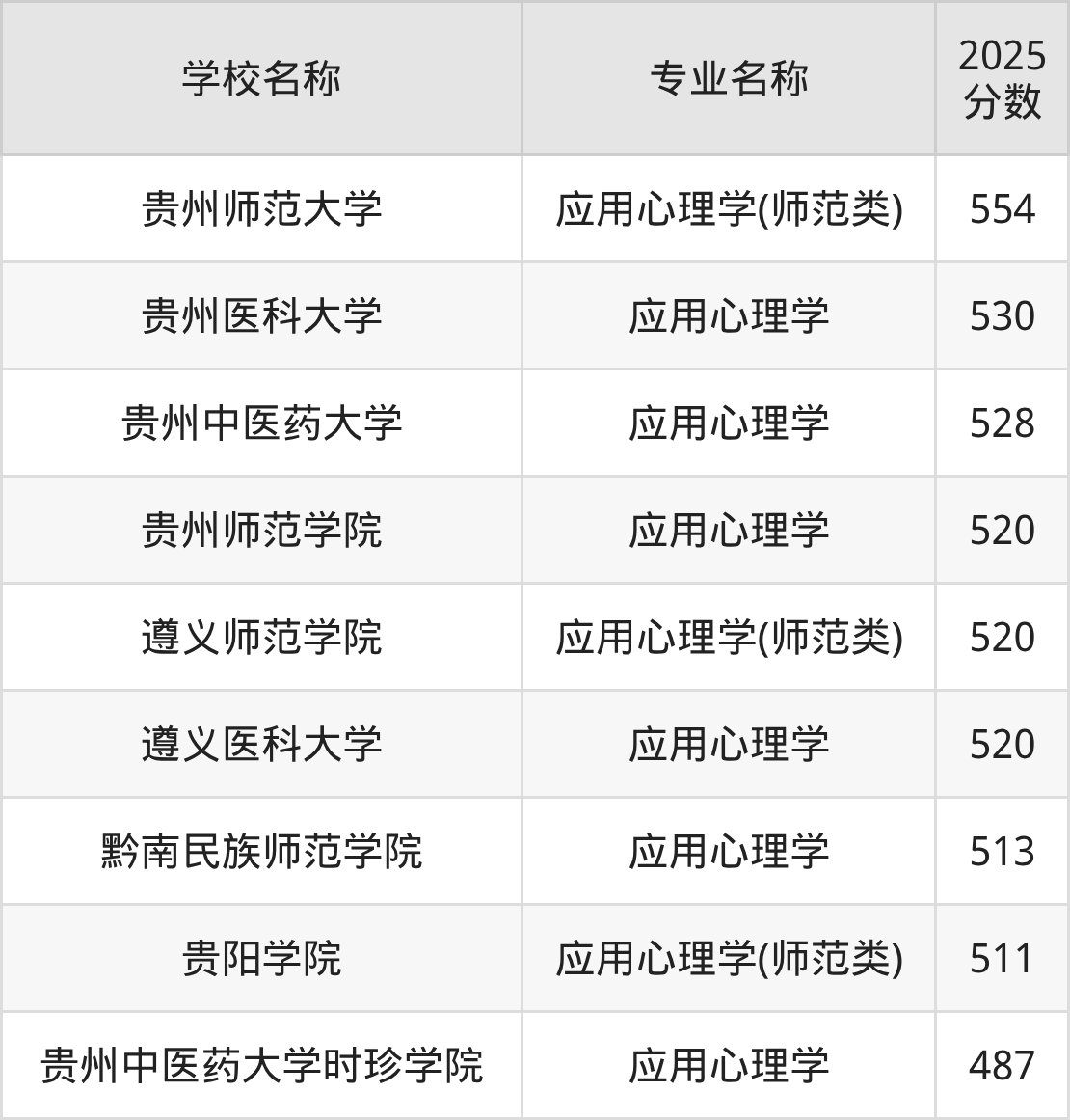 下文将为大家展示贵州省大学应用心理学专业2025年在贵州高考的最低录取分数线!