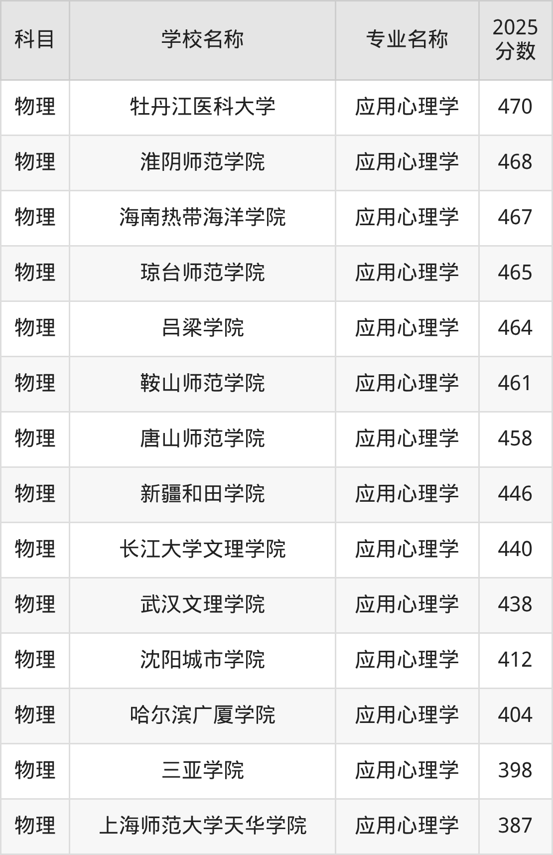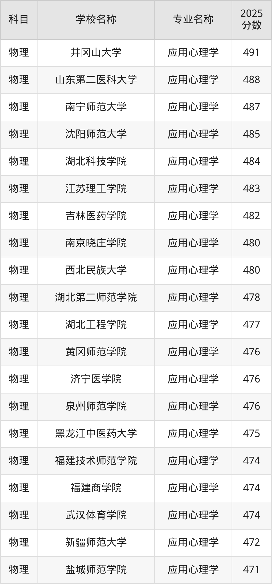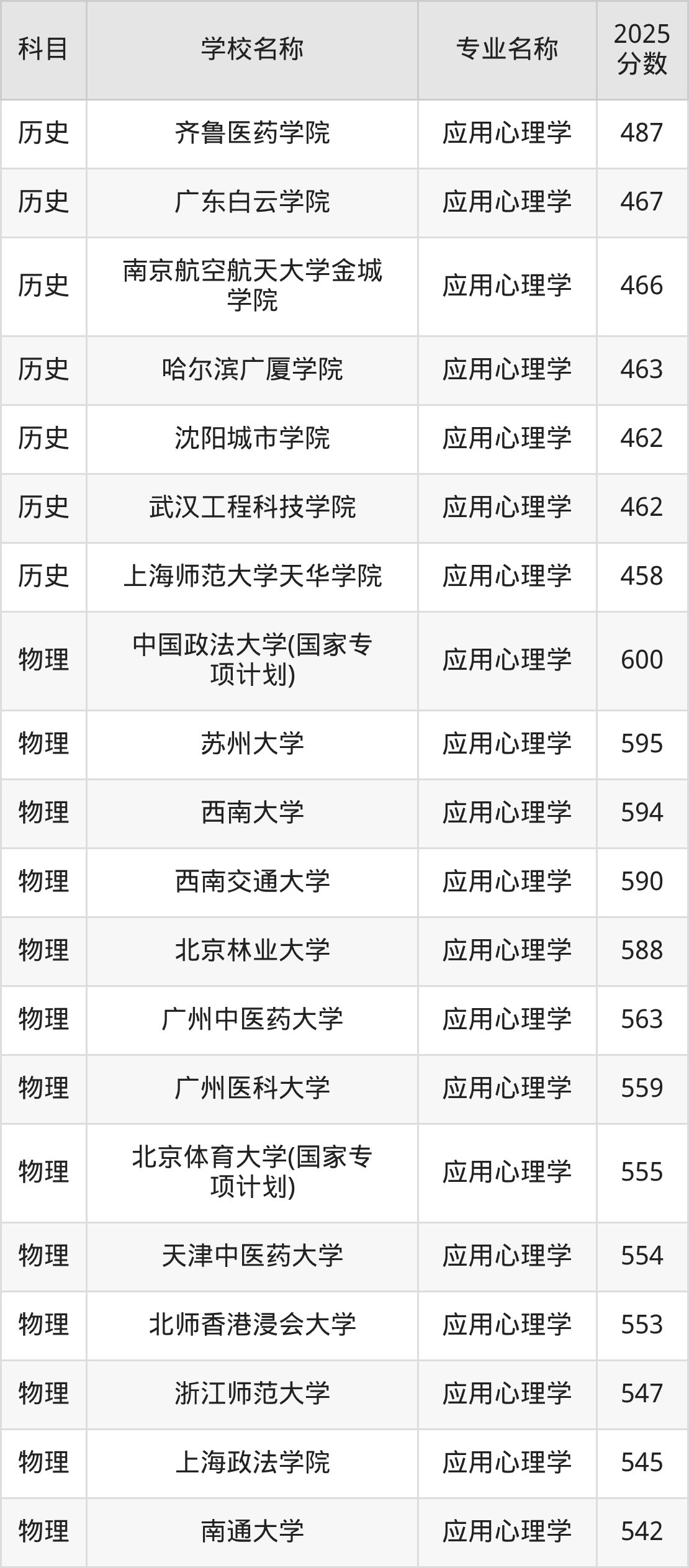 | 学校名称 | 专业名称 | 2025 分数 |