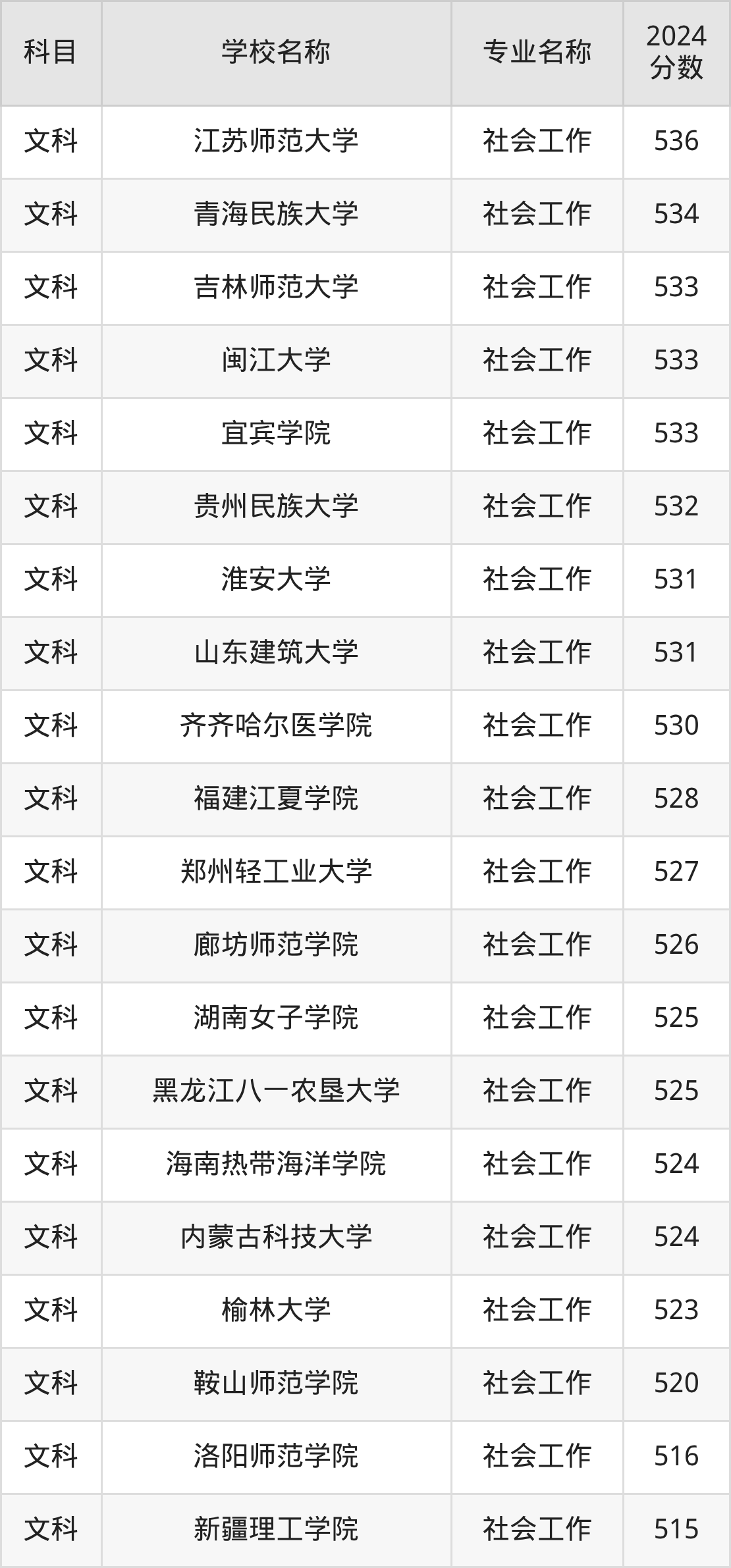 | 曲靖师范学院 | 社会工作 | 533 |