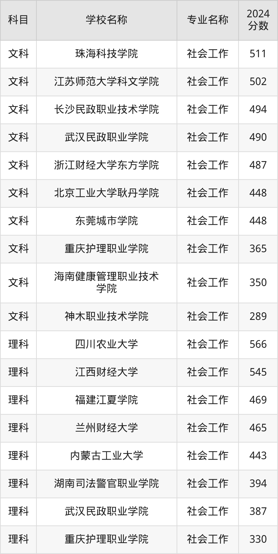 | 云南民族大学 | 社会工作 | 556 |