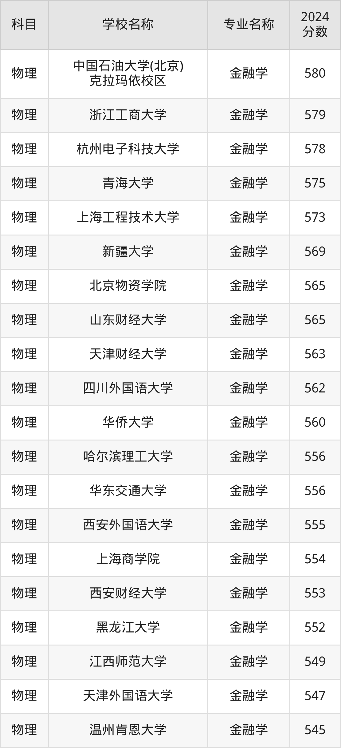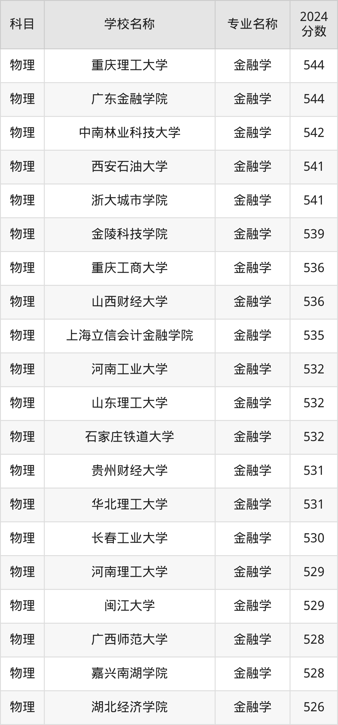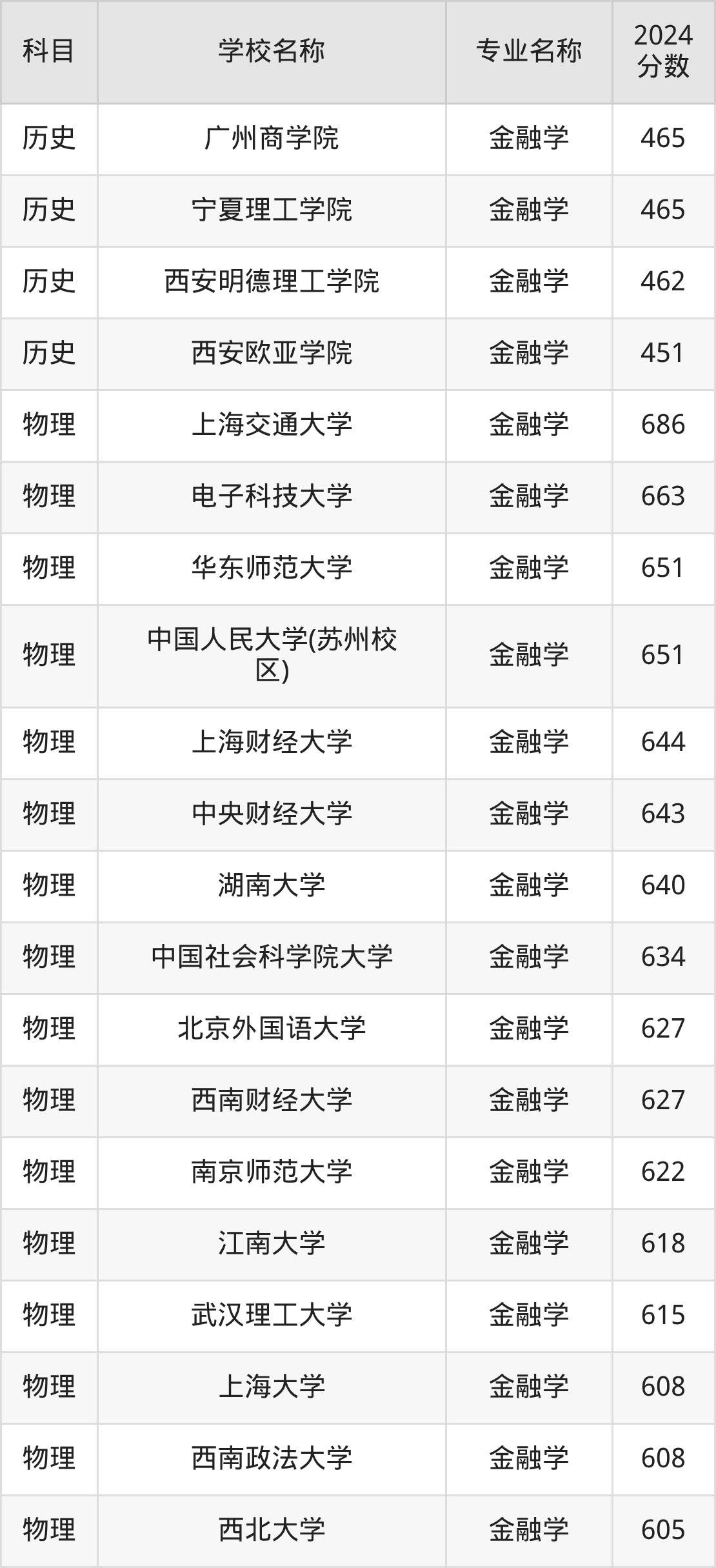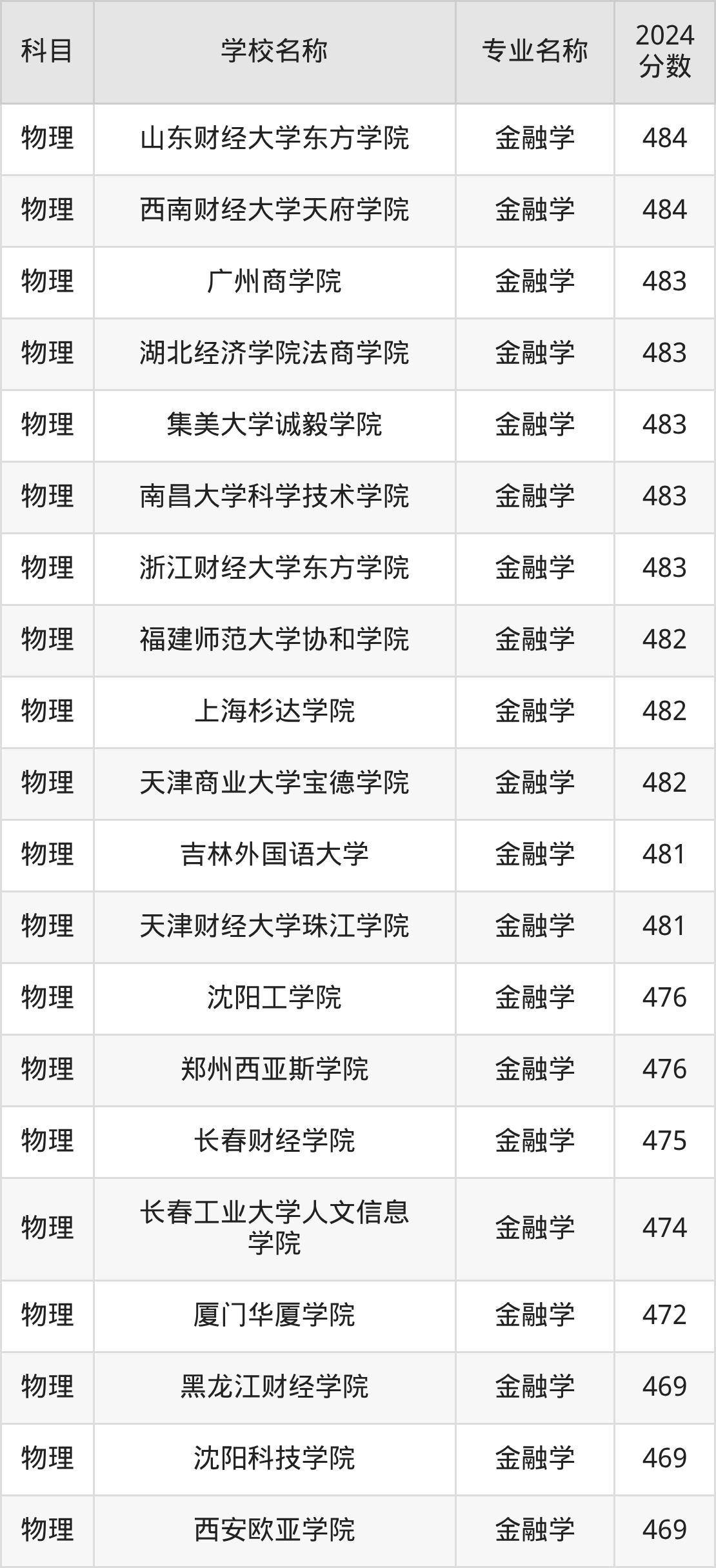 | 学校名称 | 专业名称 | 2024 分数 |