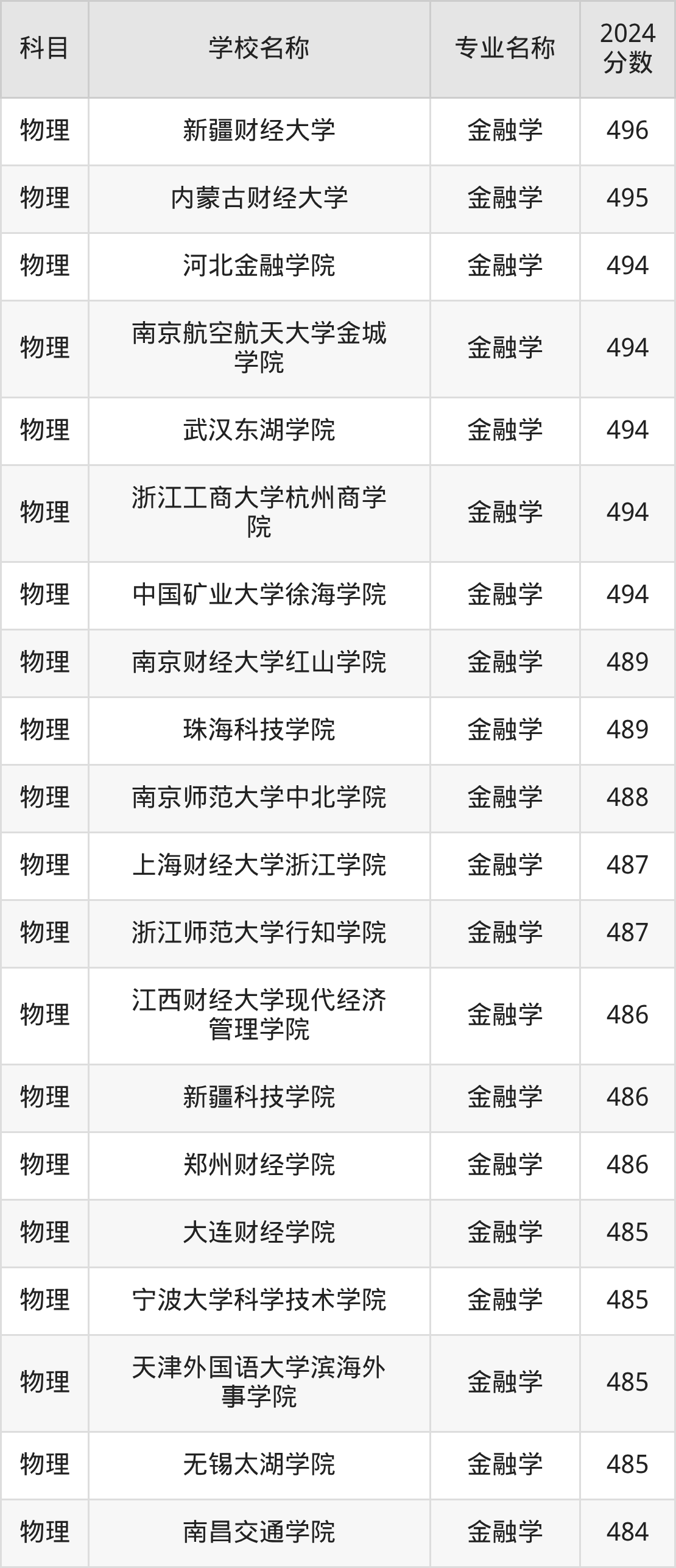 | 铜陵学院 | 金融学 | 492 |