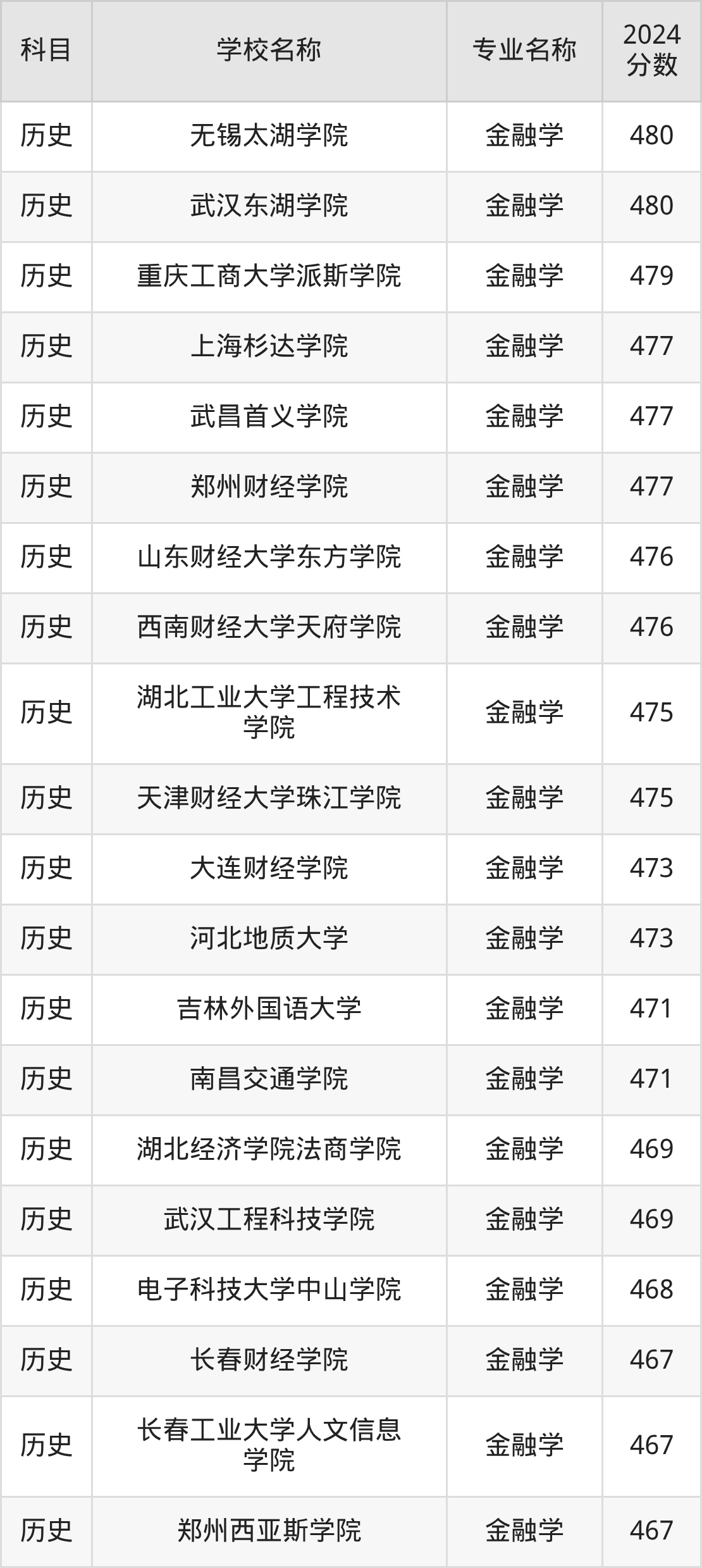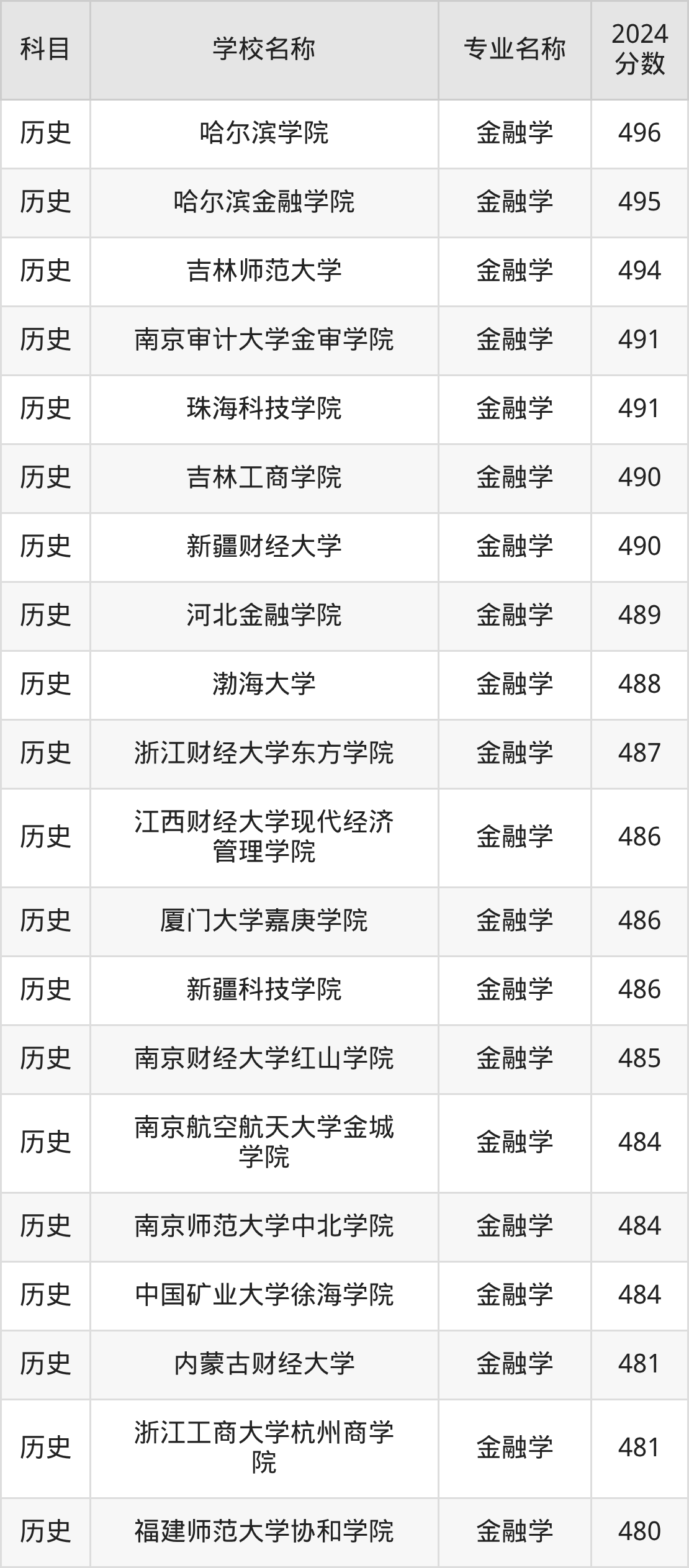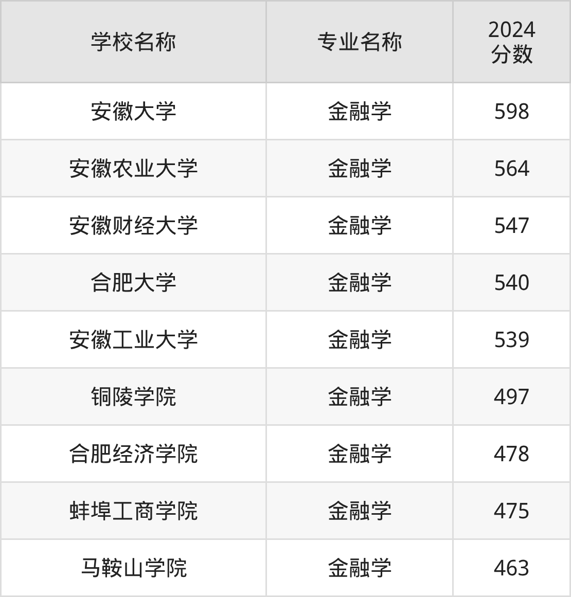 | 马鞍山学院 | 金融学 | 480 |