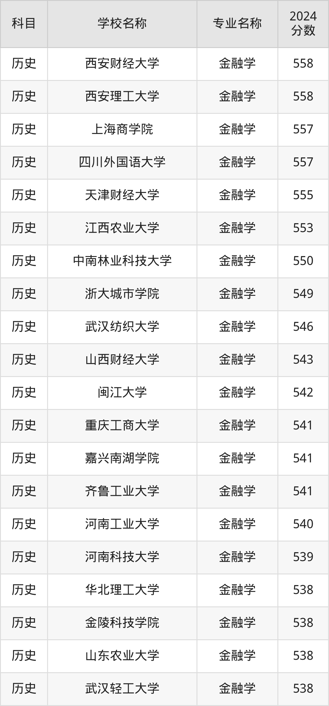 | 合肥大学 | 金融学 | 533 |