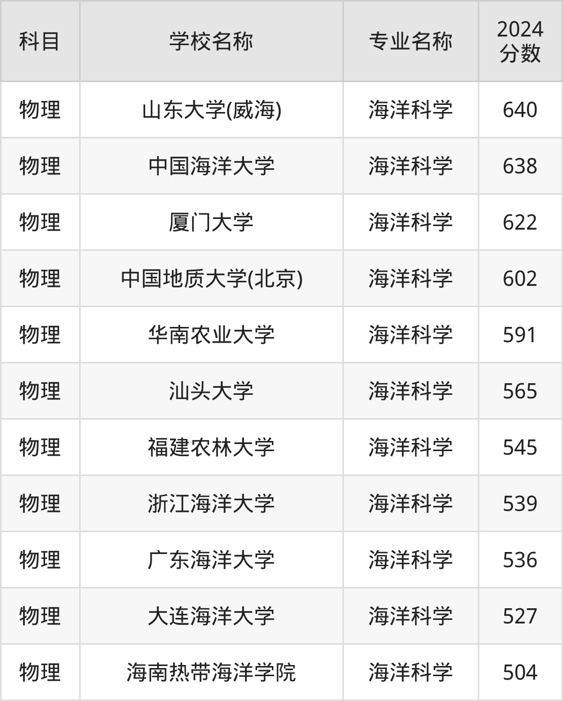 江苏高考物理组:海洋科学专业的最低分是499分~595分