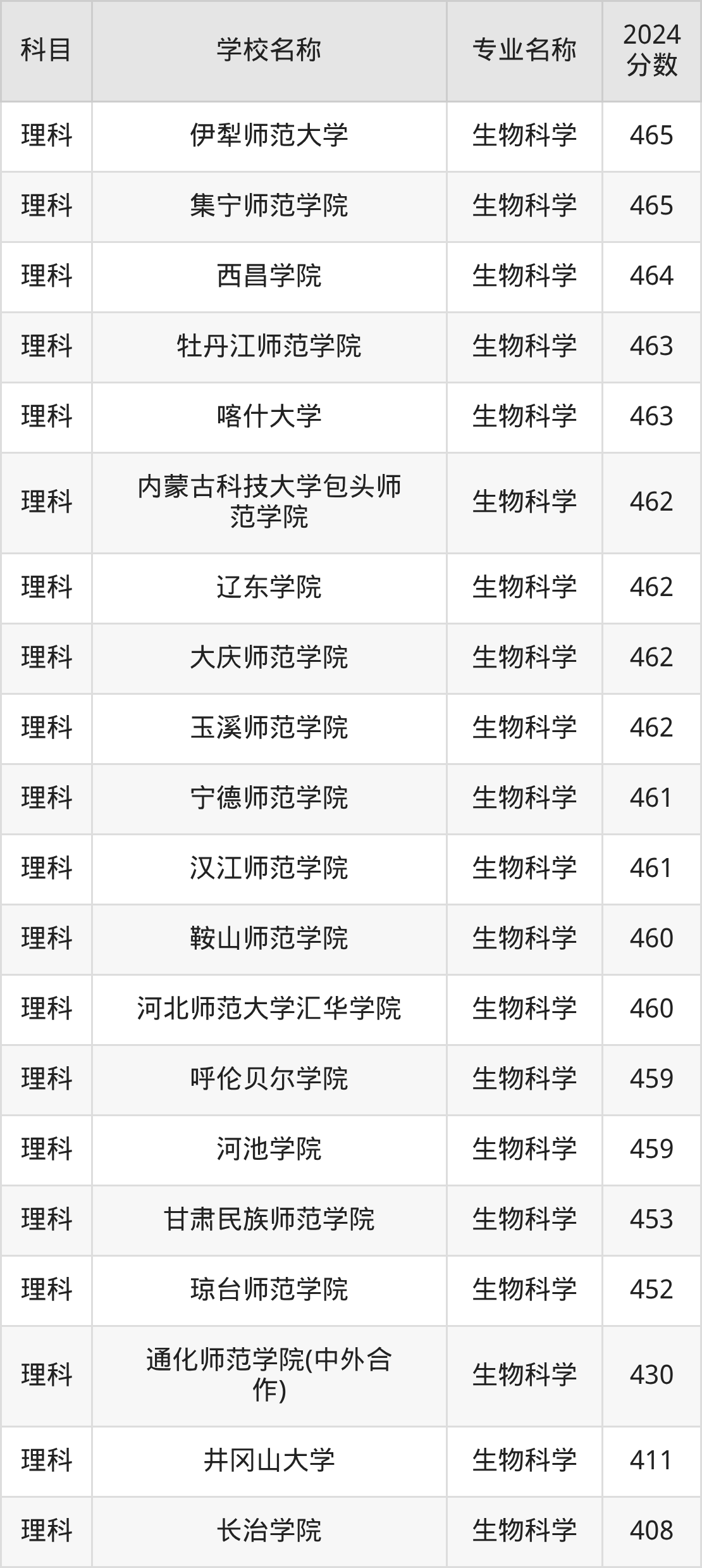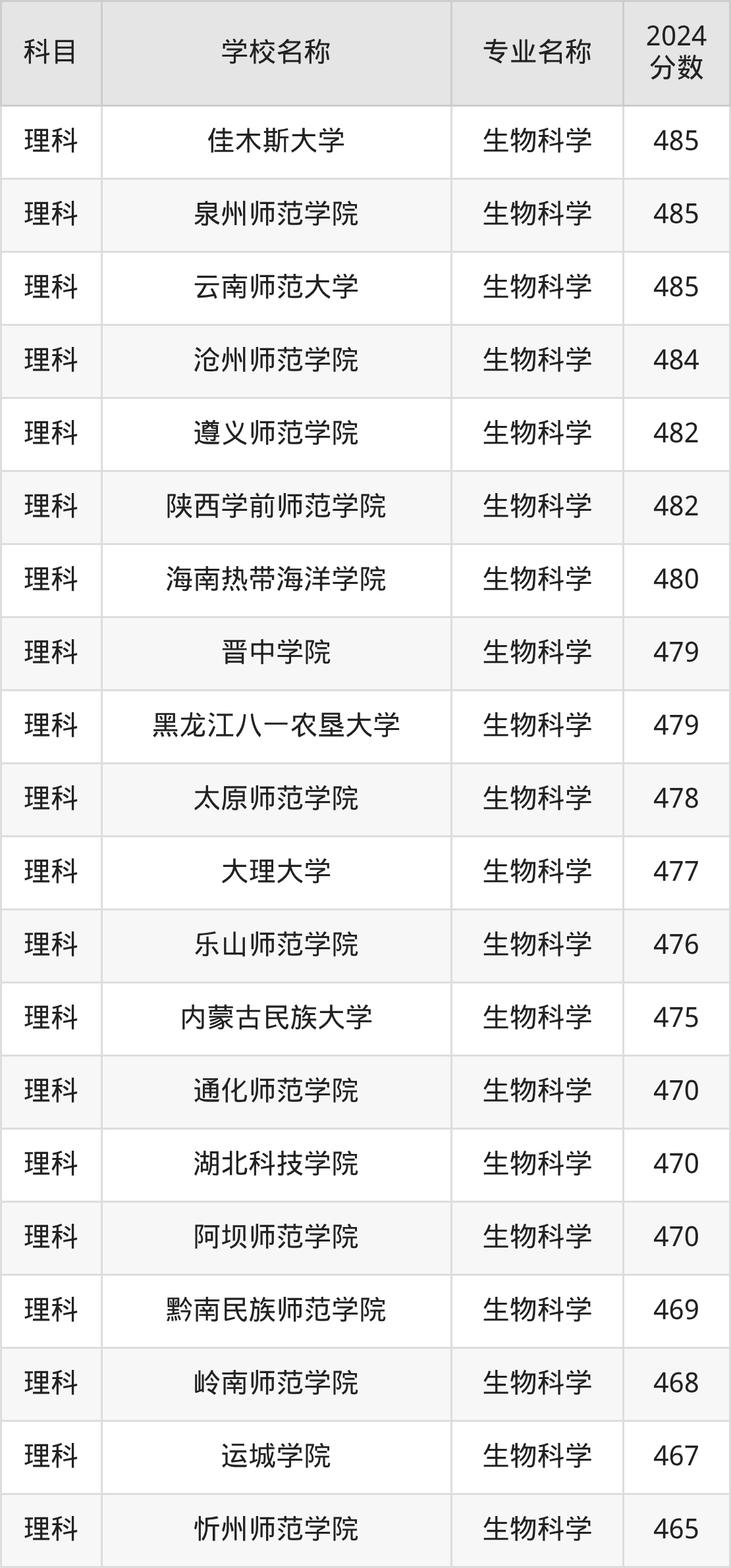 | 商丘师范学院 | 生物科学(师范) | 469 |