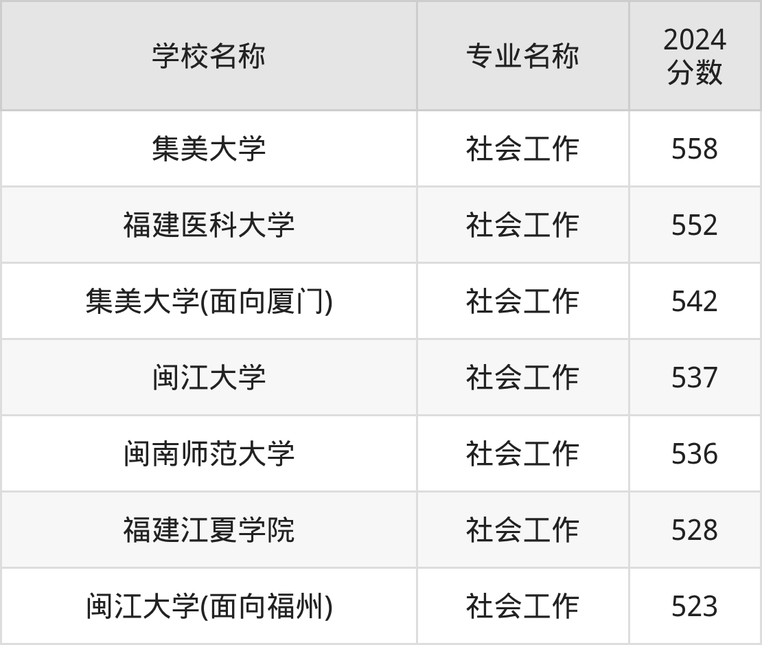 | 集美大学(面向厦门) | 社会工作 | 542 |