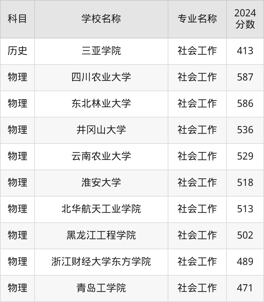 | 福建江夏学院 | 社会工作 | 504 |