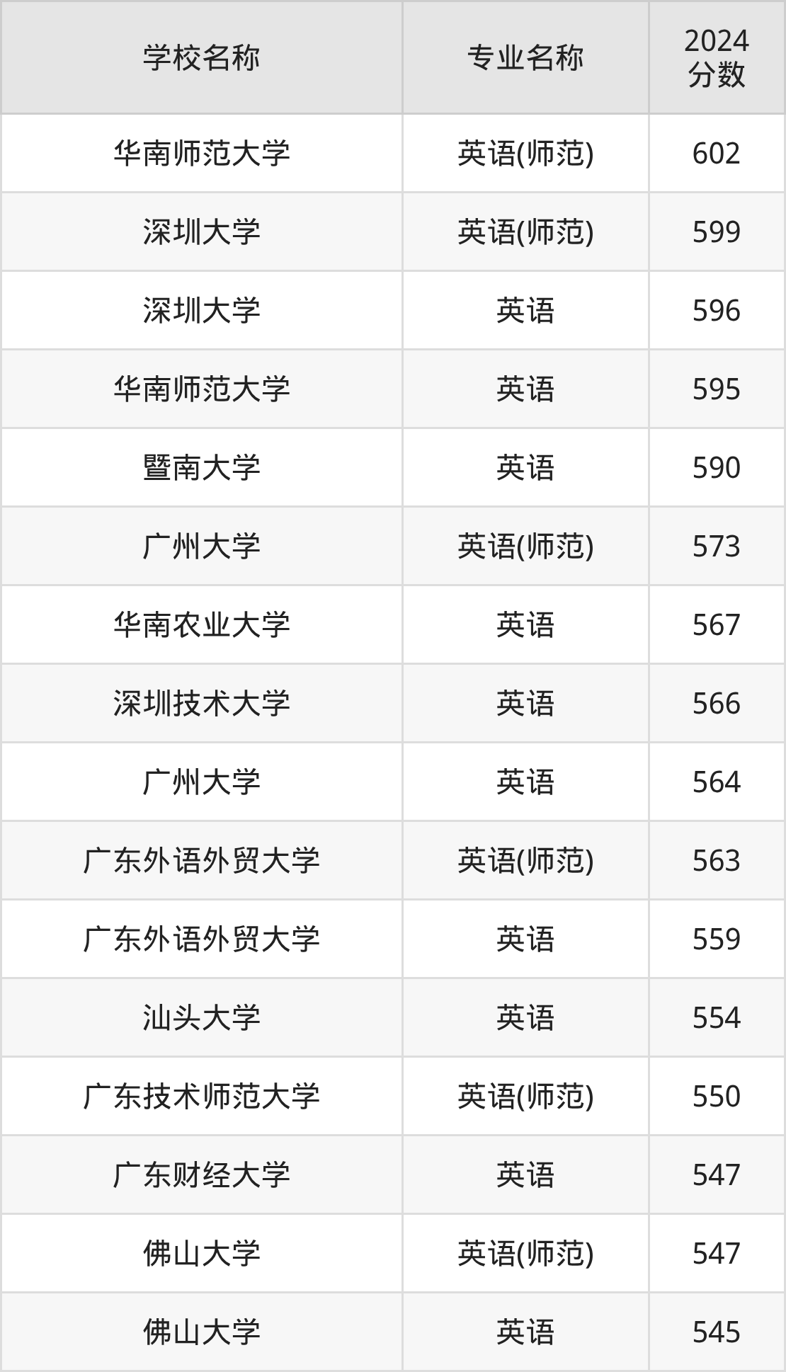 | 深圳大学 | 英语(师范) | 580 |