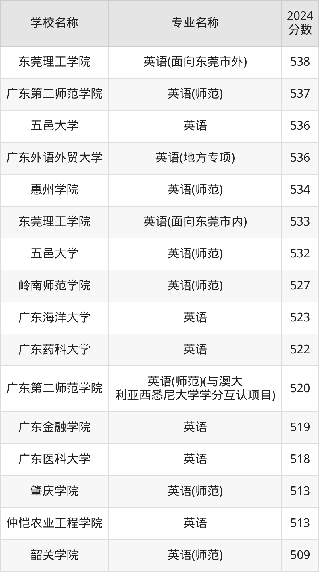 | 广东金融学院 | 英语 | 513 |