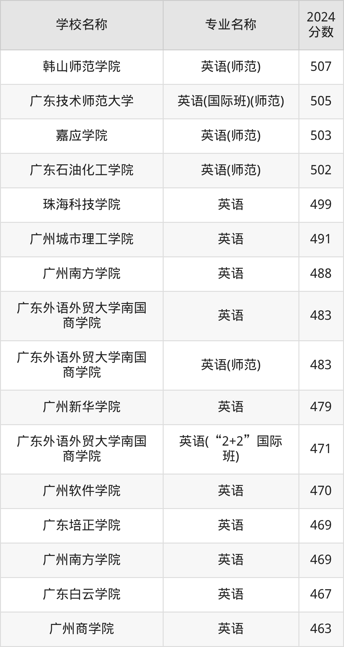 | 广州南方学院 | 英语 | 479 |
