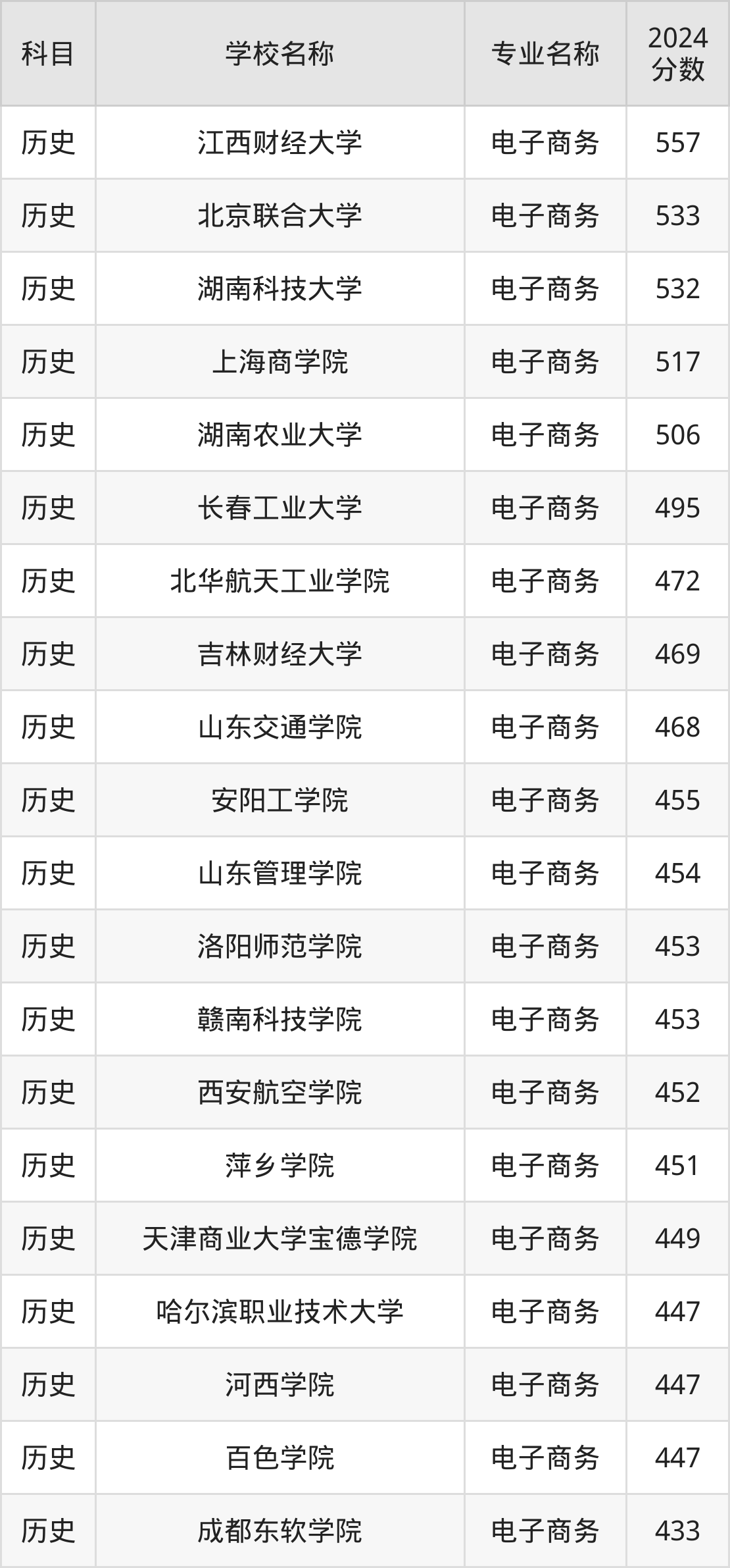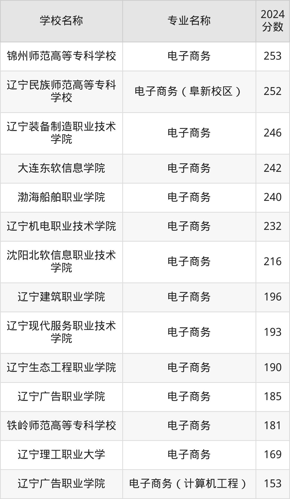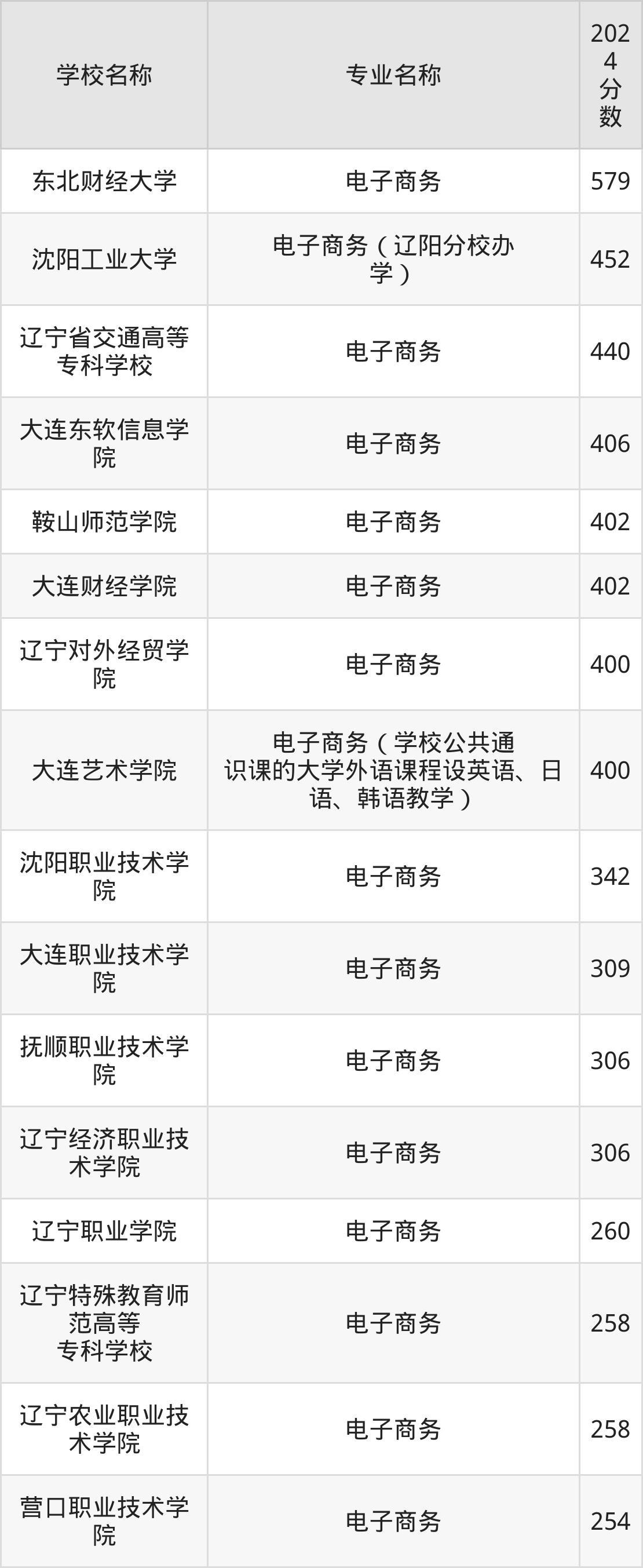 | 辽宁省交通高等专科学 校 | 电子商务 | 414 |