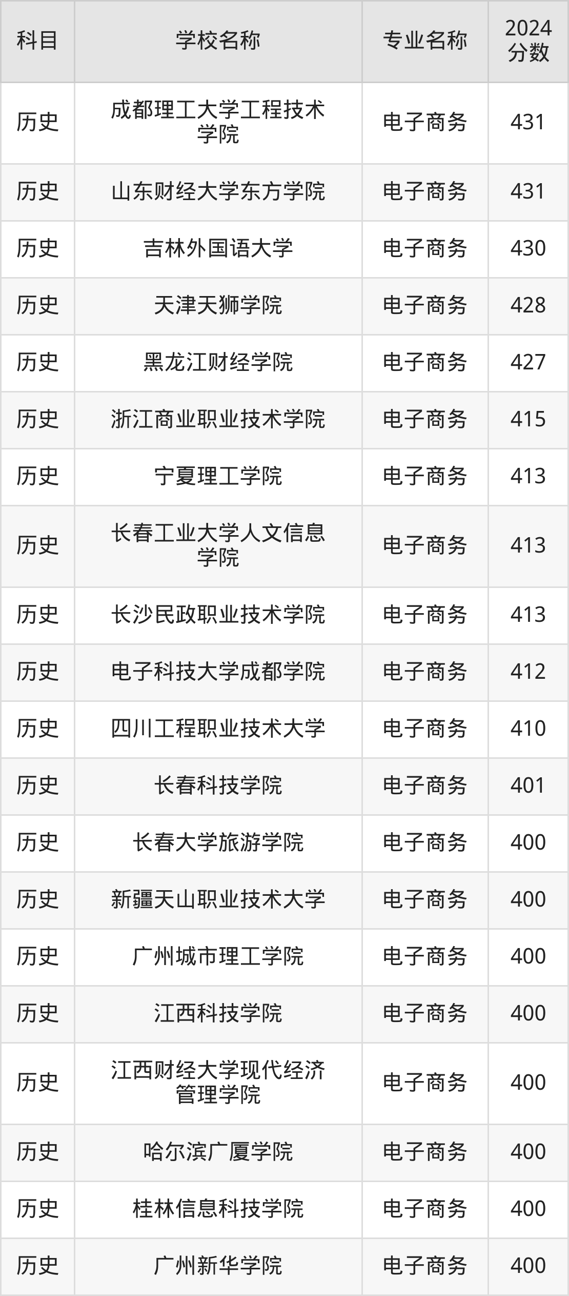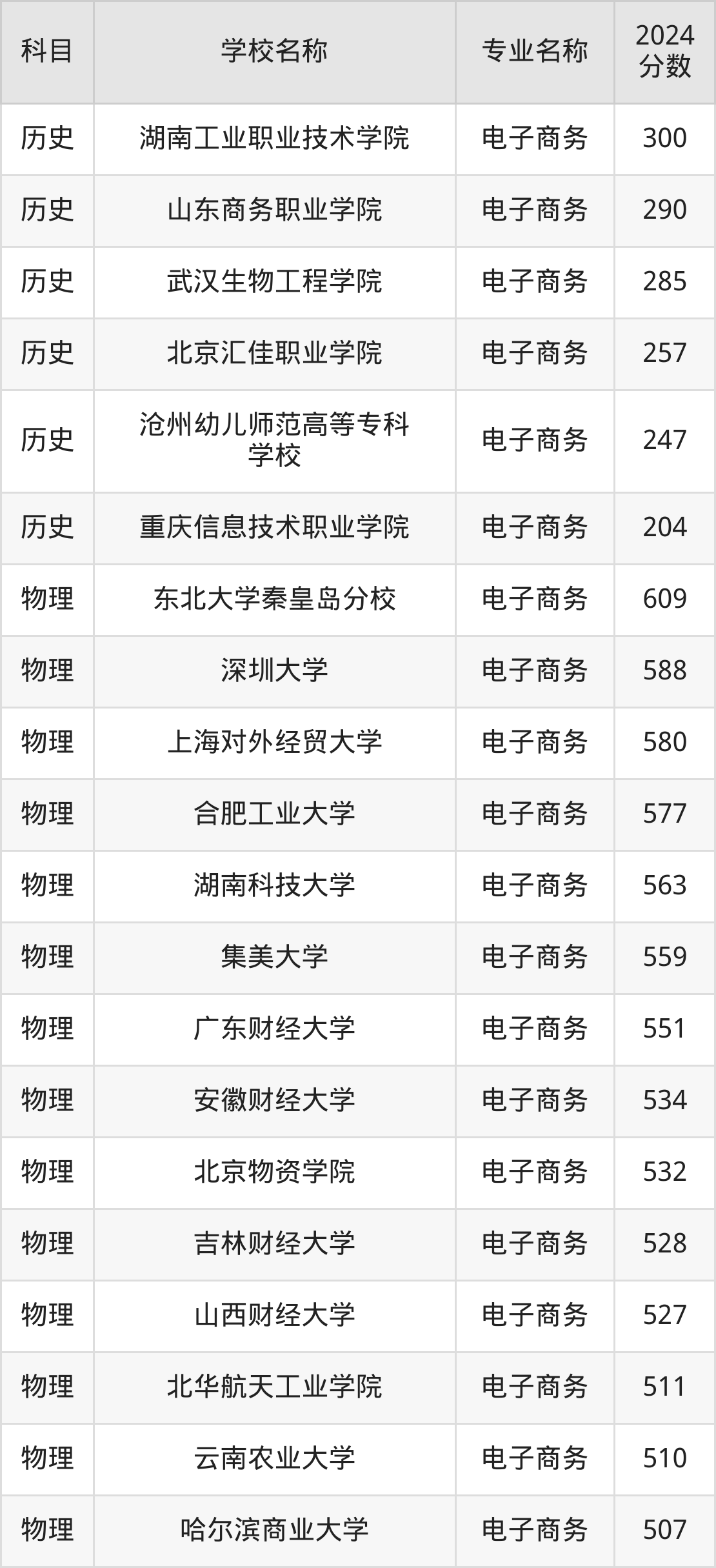 | 沈阳北软信息职业技术 学院 | 电子商务 | 260 |
