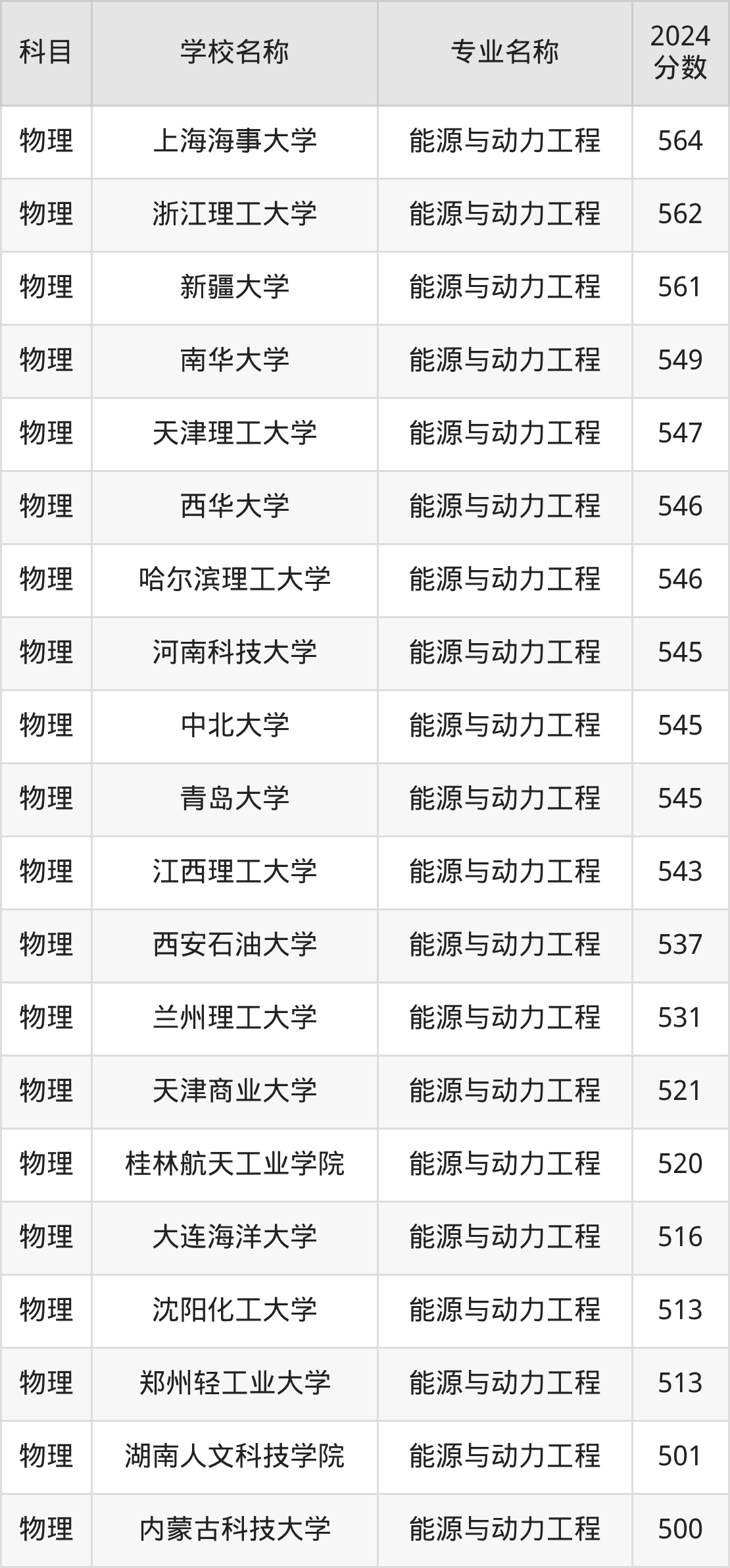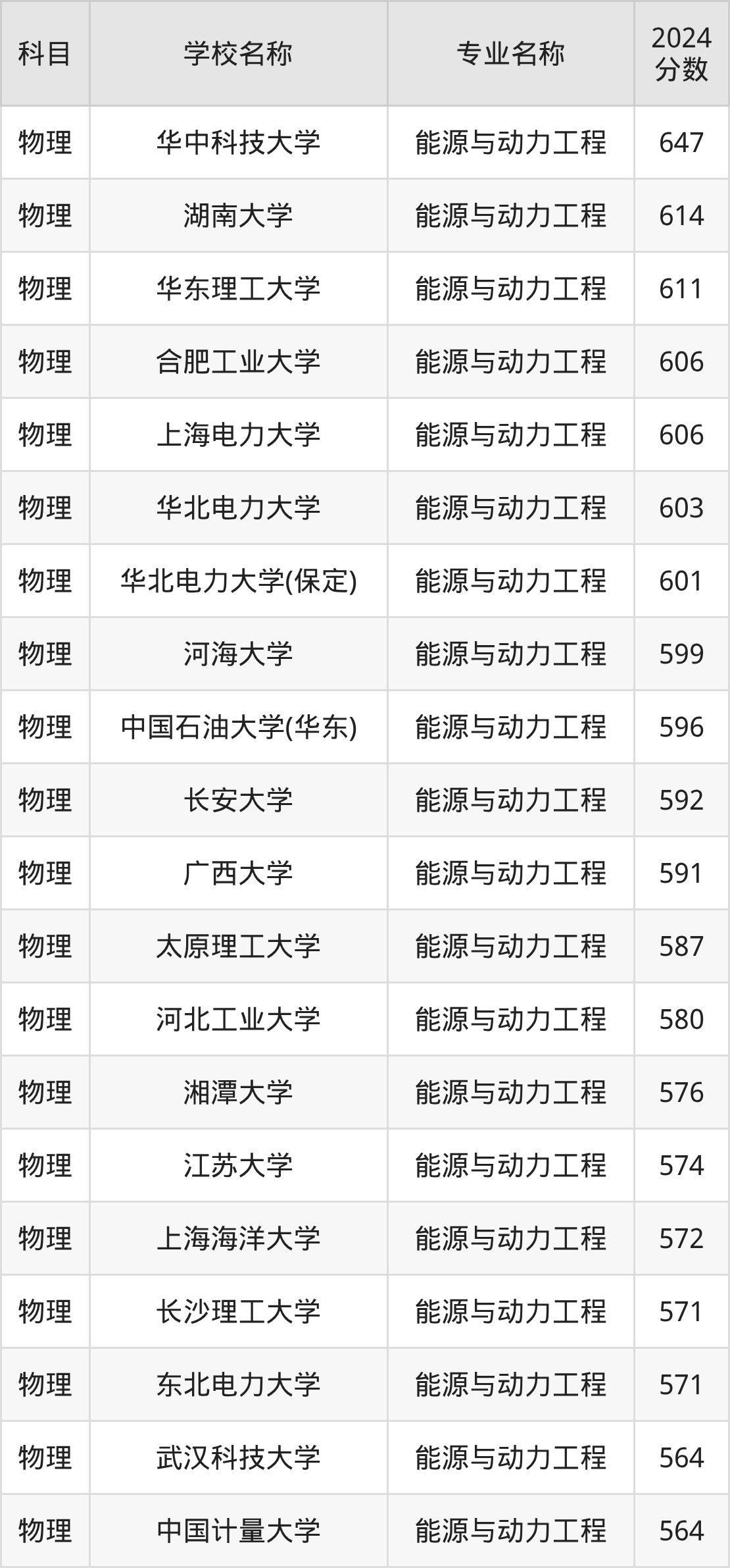 通过上文大家可以知晓,在广东省内招能源与动力工程专业的院校数量较少,所以下文将为2026届高考生继续展示:省外大学的能源与动力工程专业2024年在广东高考的录取情况,包含华中科技大学、湖南大学、华东理工大学、合肥工业大学、上海电力大学。