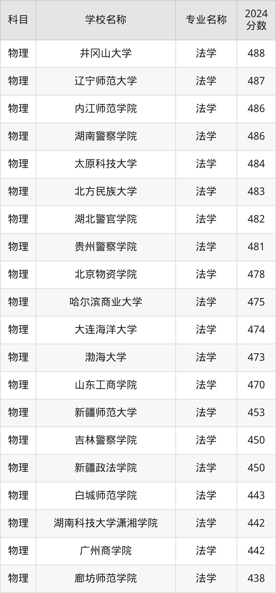 | 广西警察学院 | 法学(在五合校 区办学) | 467 |