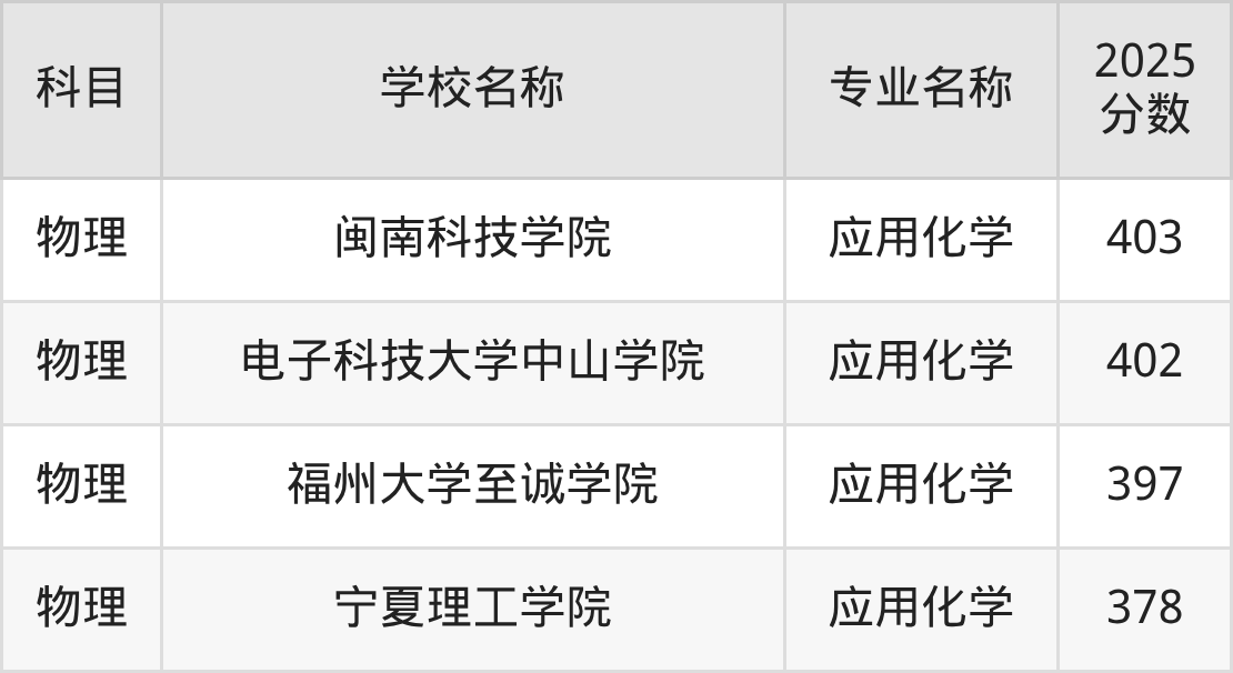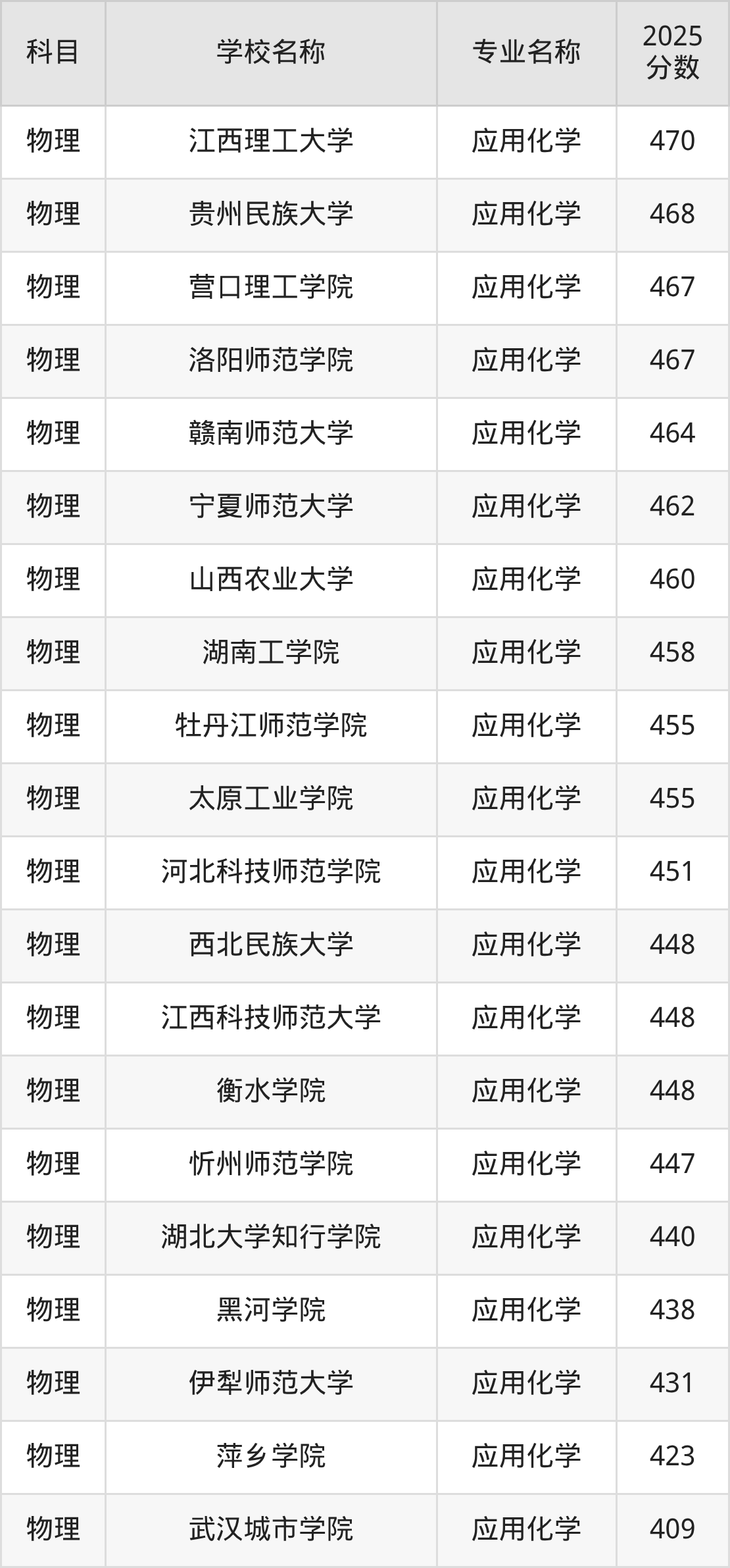 | 内蒙古科技大学包头师 范学院 | 应用化学 | 425 |