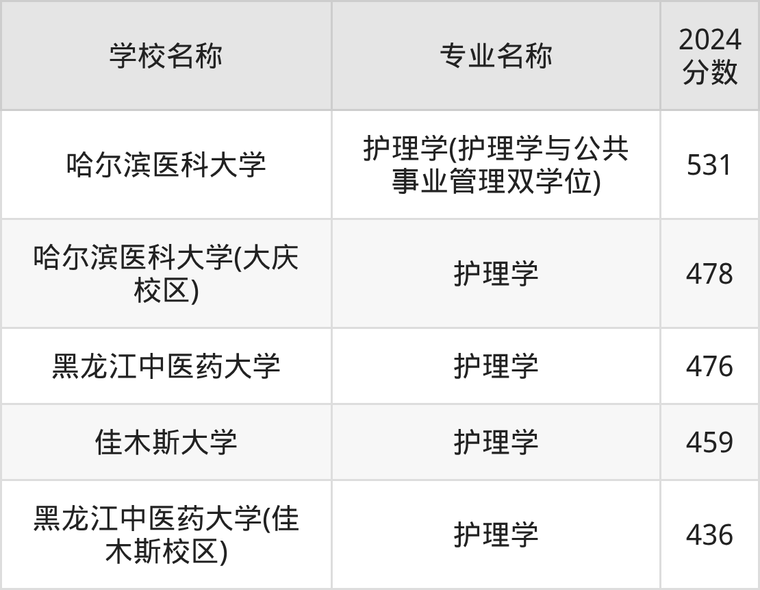 下文将为大家展示黑龙江省大学护理学专业2024年在黑龙江高考的最低录取分数线!