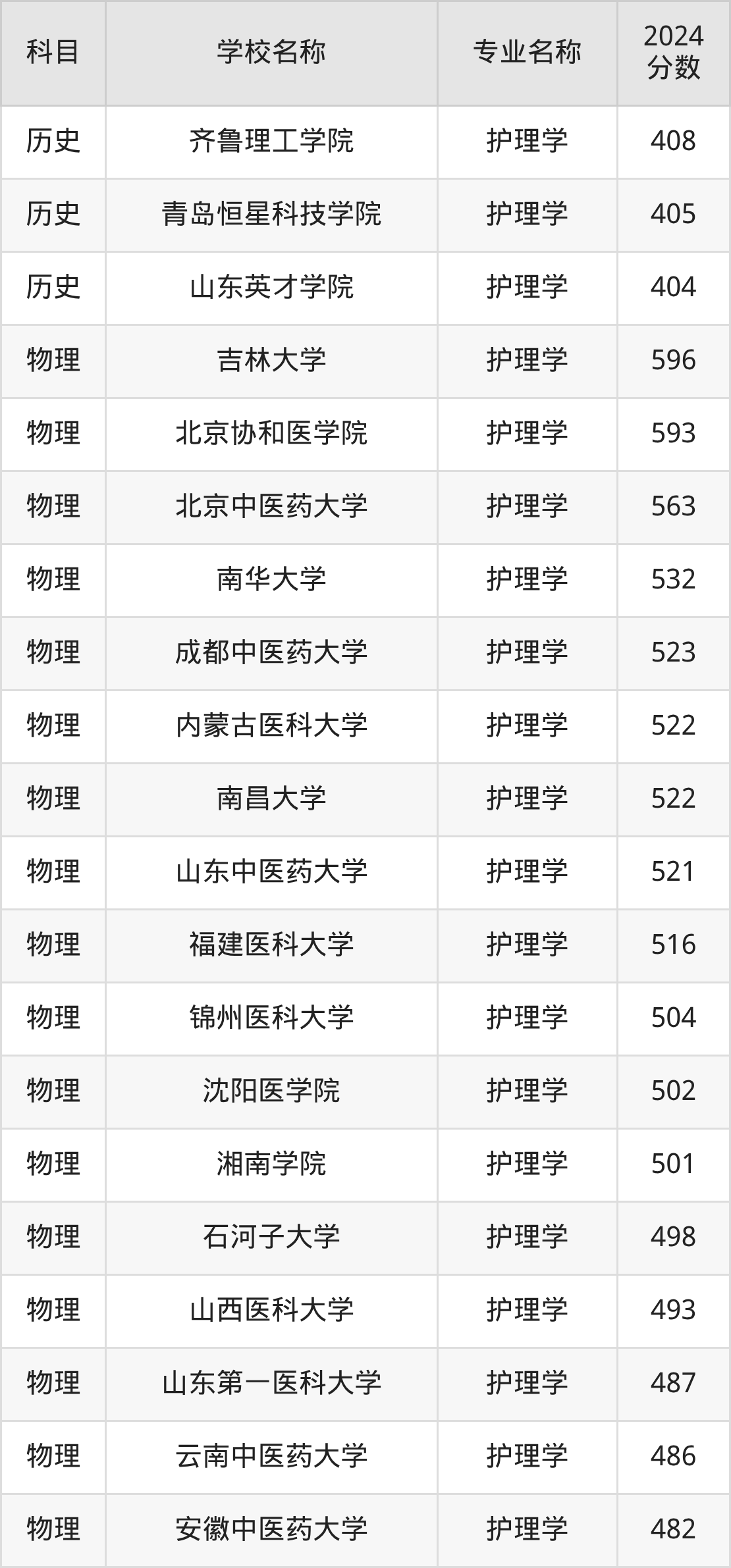 在直接以“护理学”的名称招生的黑龙江省大学中,哈尔滨医科大学的分数线最高、排名第一名,在物理组的最低分是535分,全省排名前23987位的高考生才有较大机会被录取。