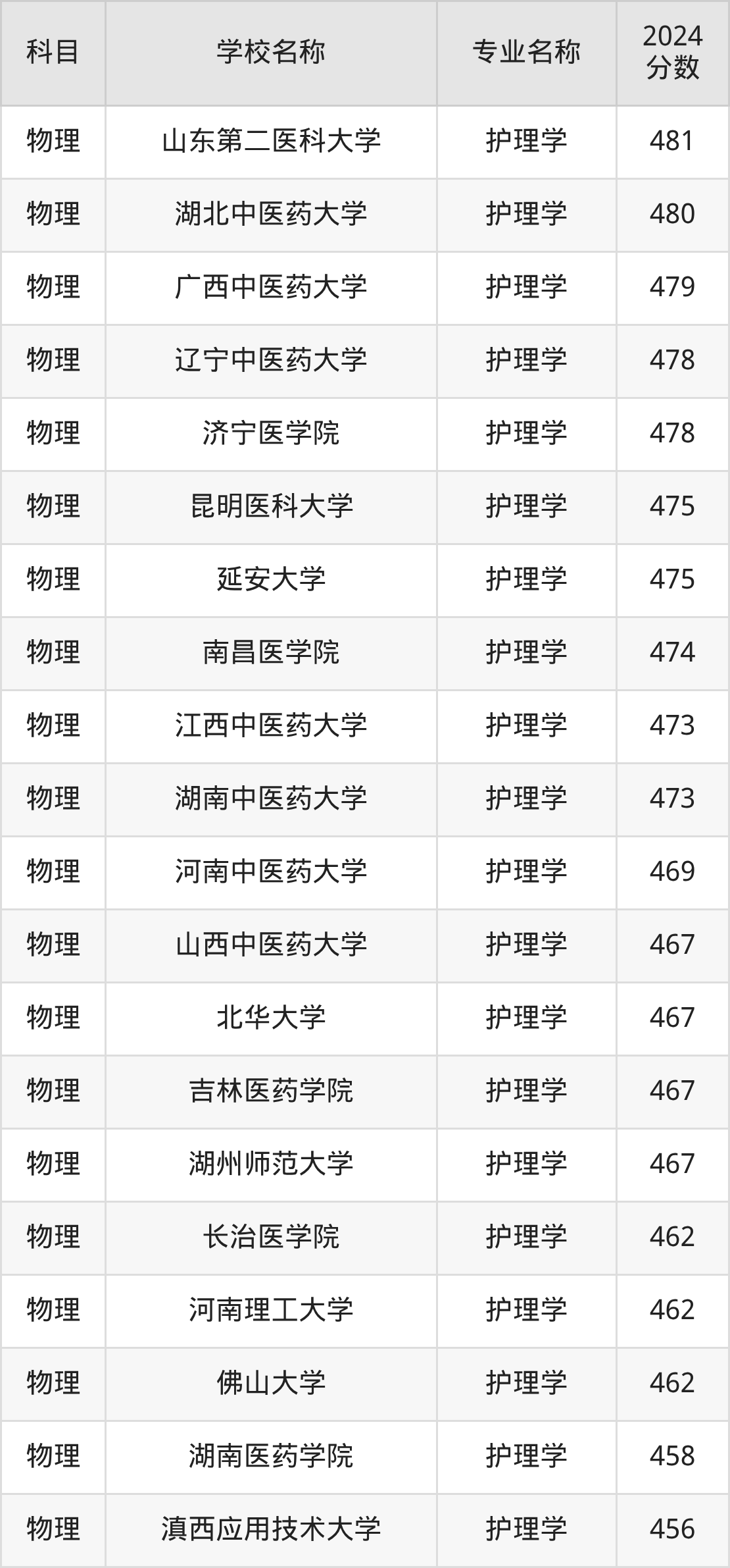 | 黑龙江中医药大学 | 护理学 | 468 |