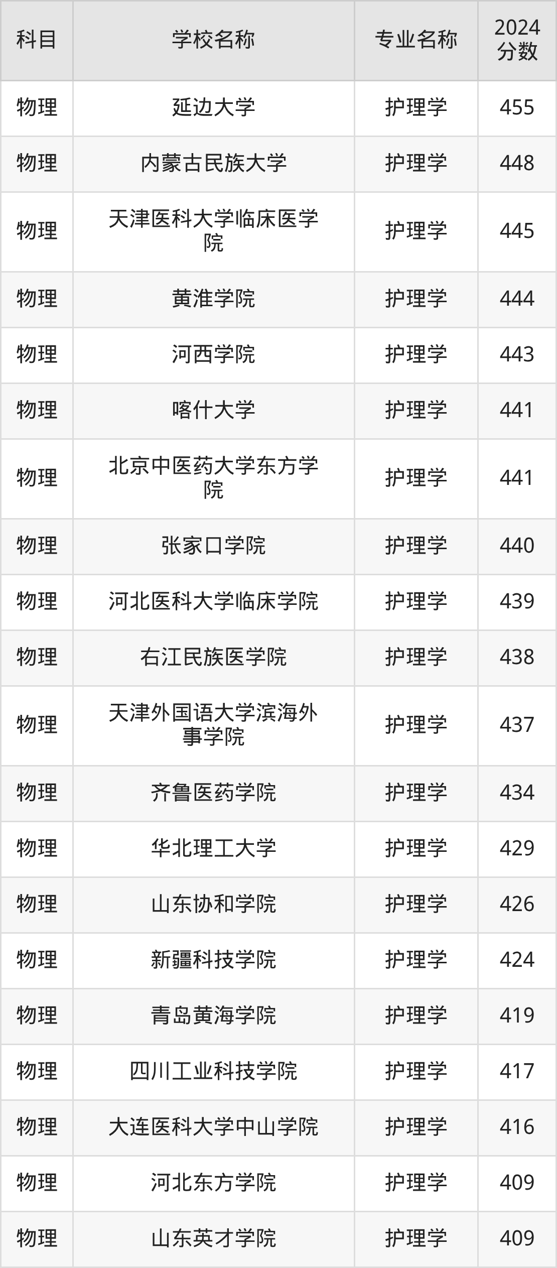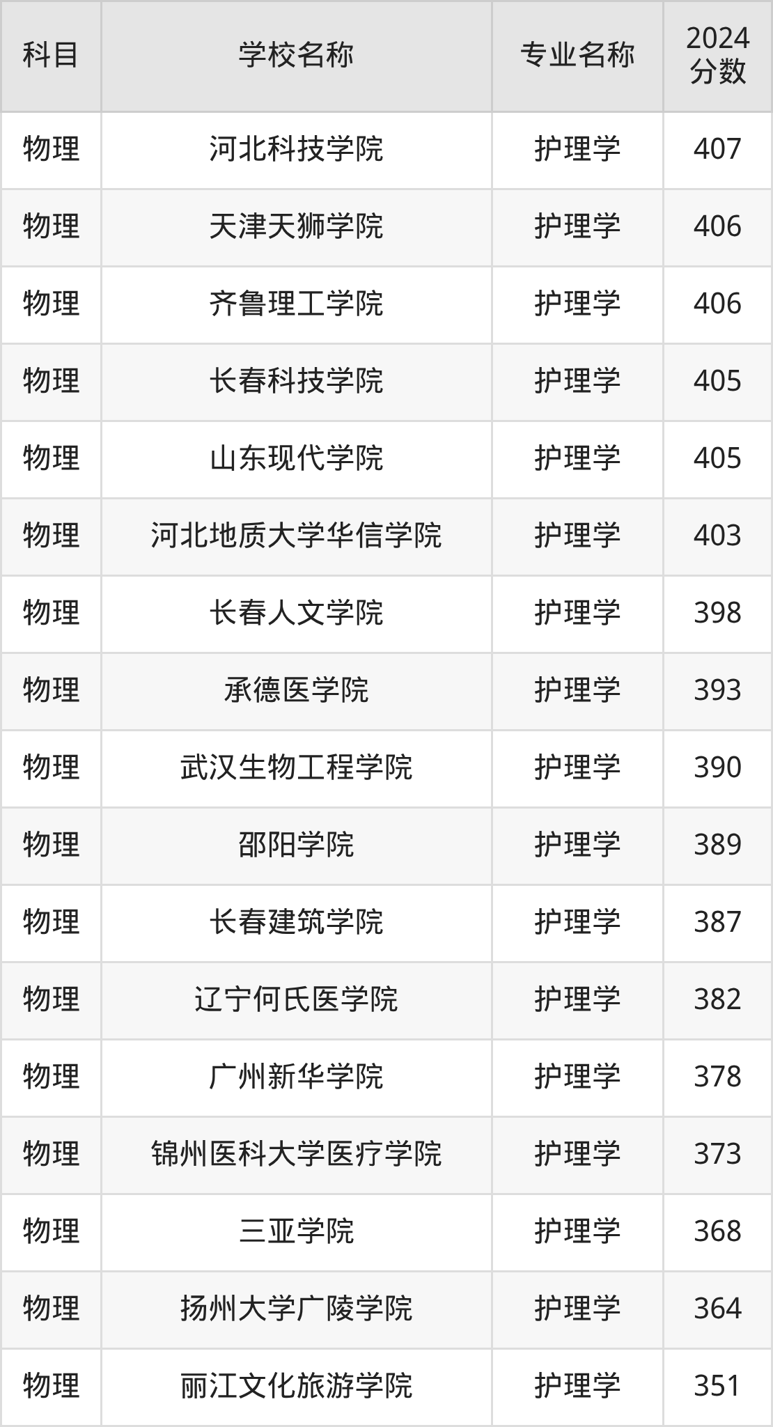 黑龙江高考物理组:护理学专业的最低分是387分~535分