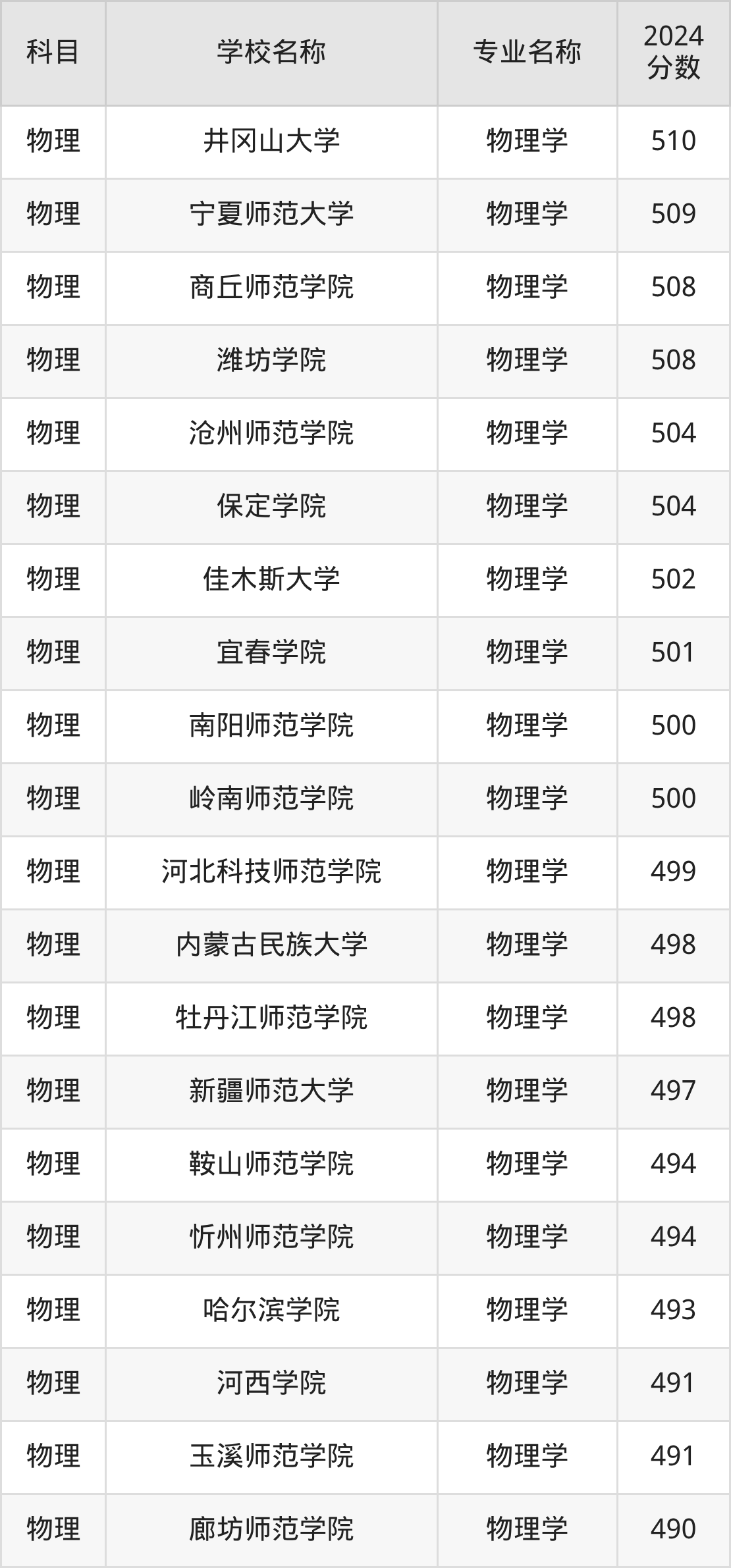 | 安庆师范大学 | 物理学(师范) | 524 |