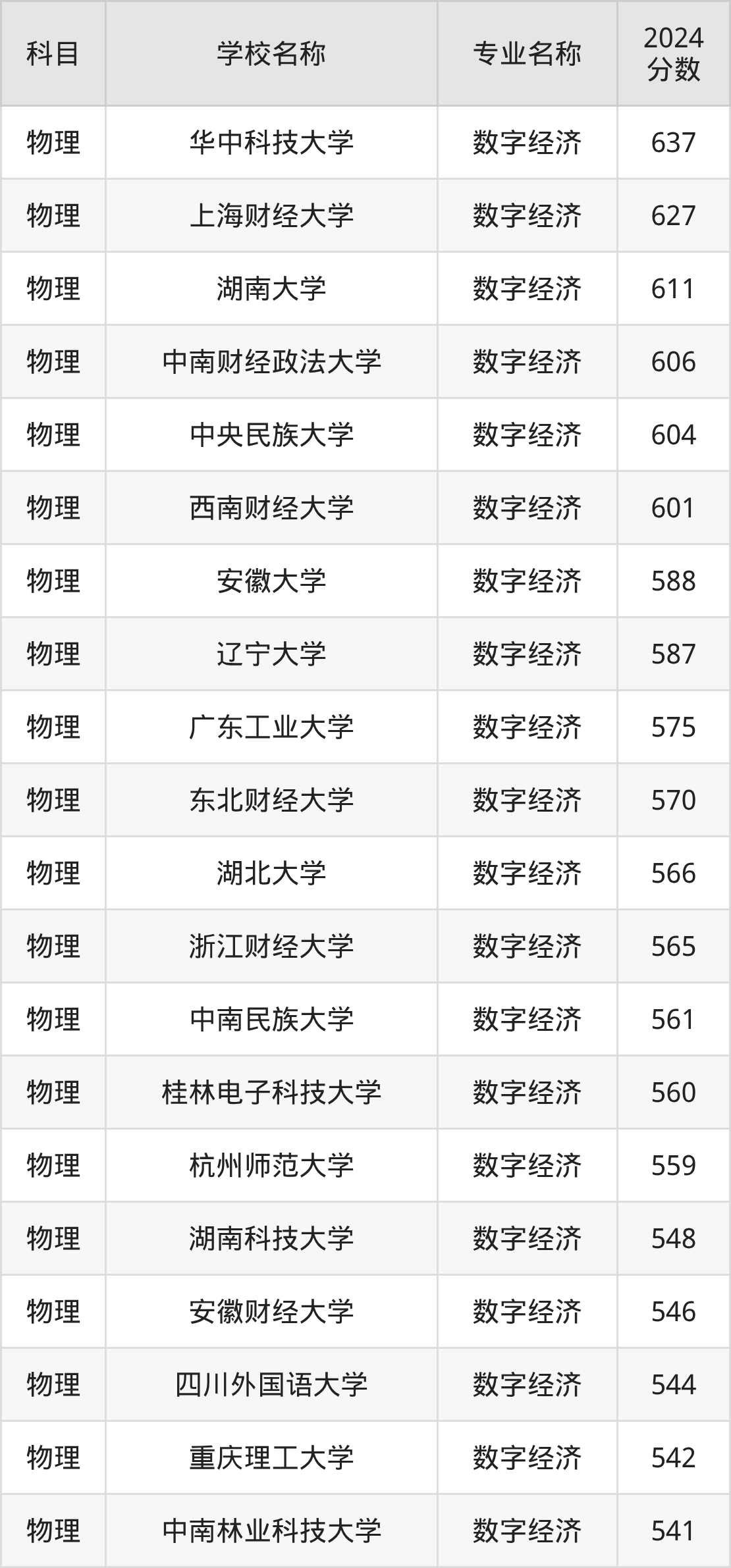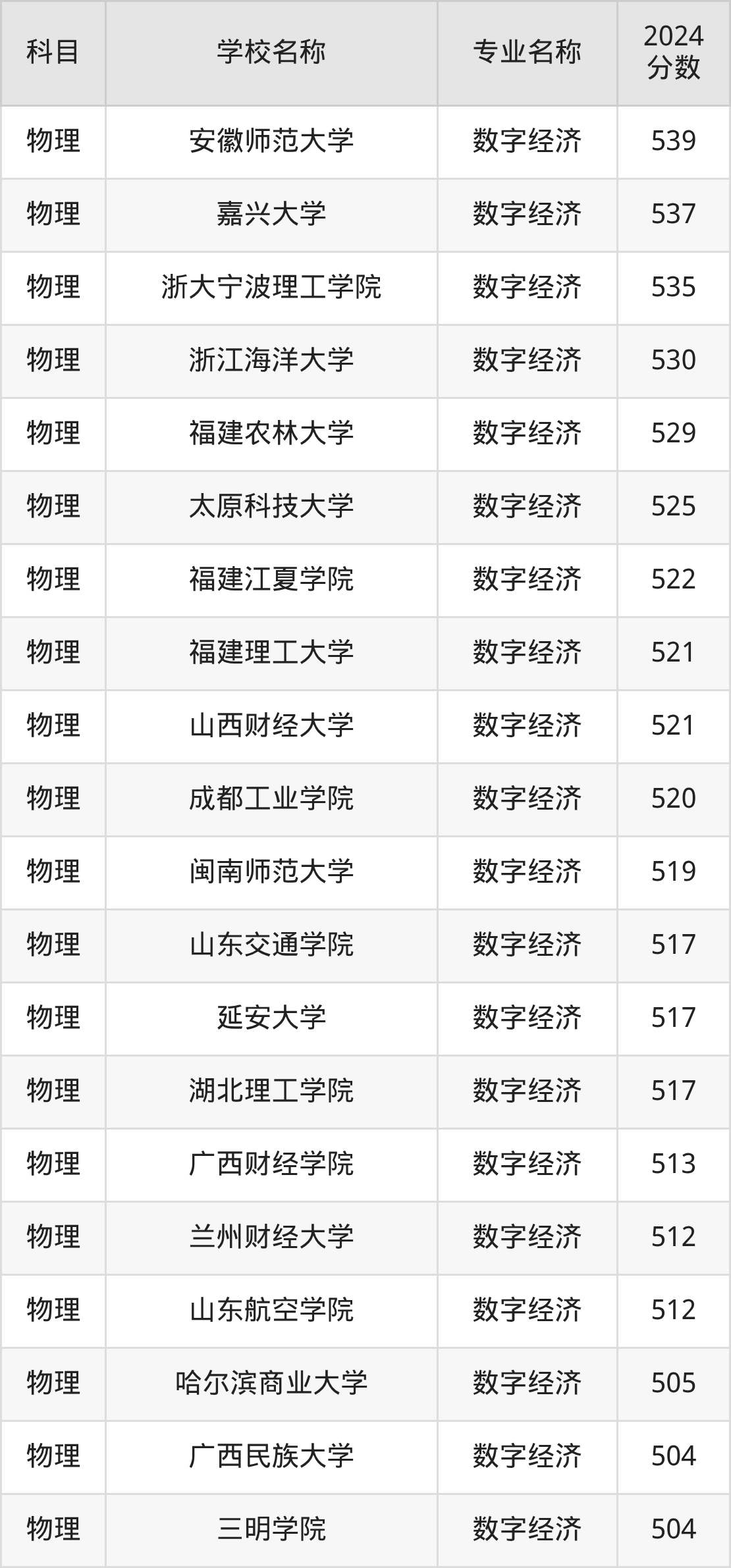 | 学校名称 | 专业名称 | 2024 分数 |