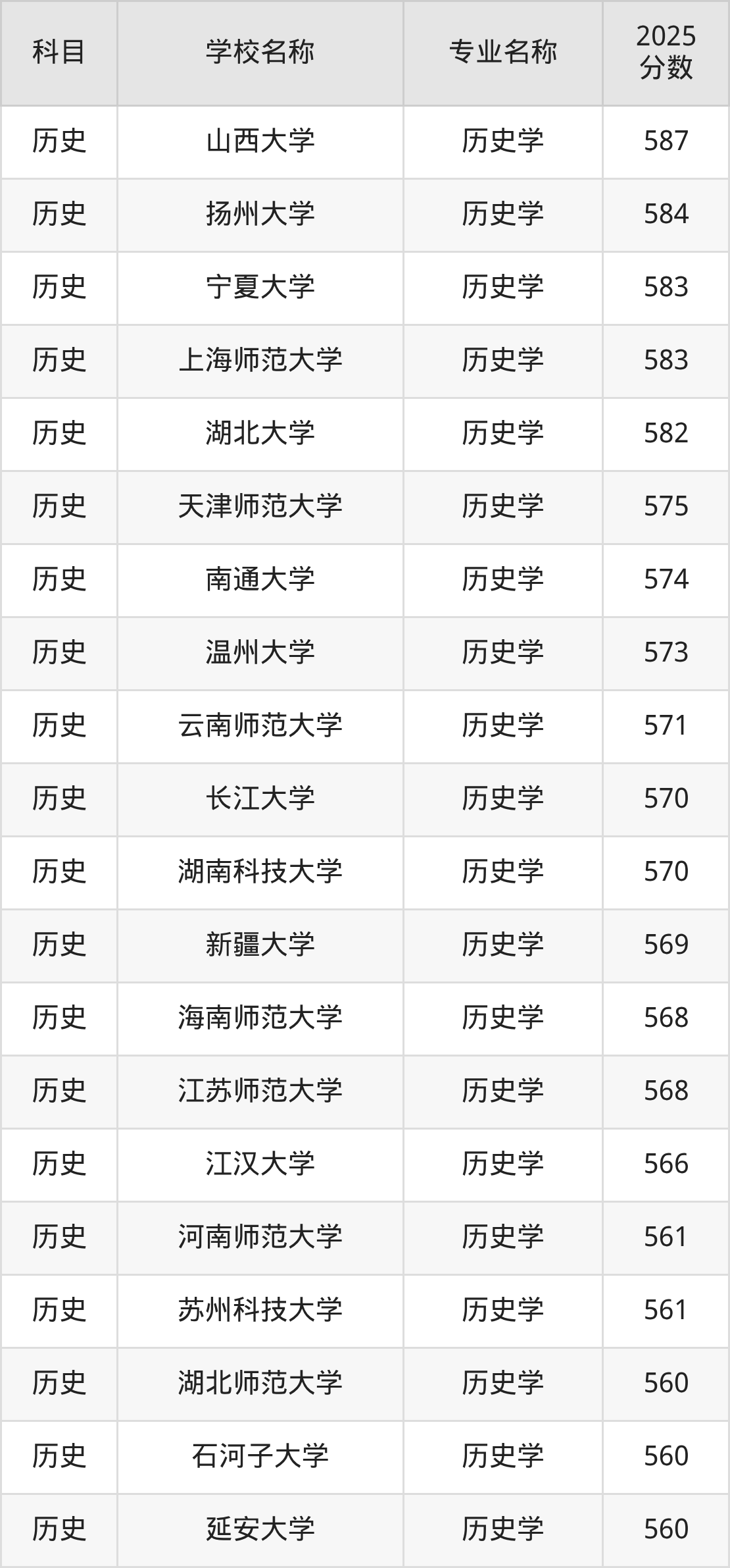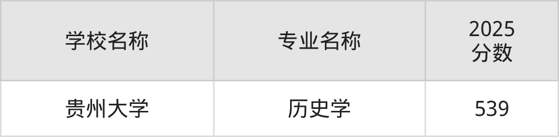 | 贵州大学(地方专项计 划) | 历史学(地方专 项) | 581 |