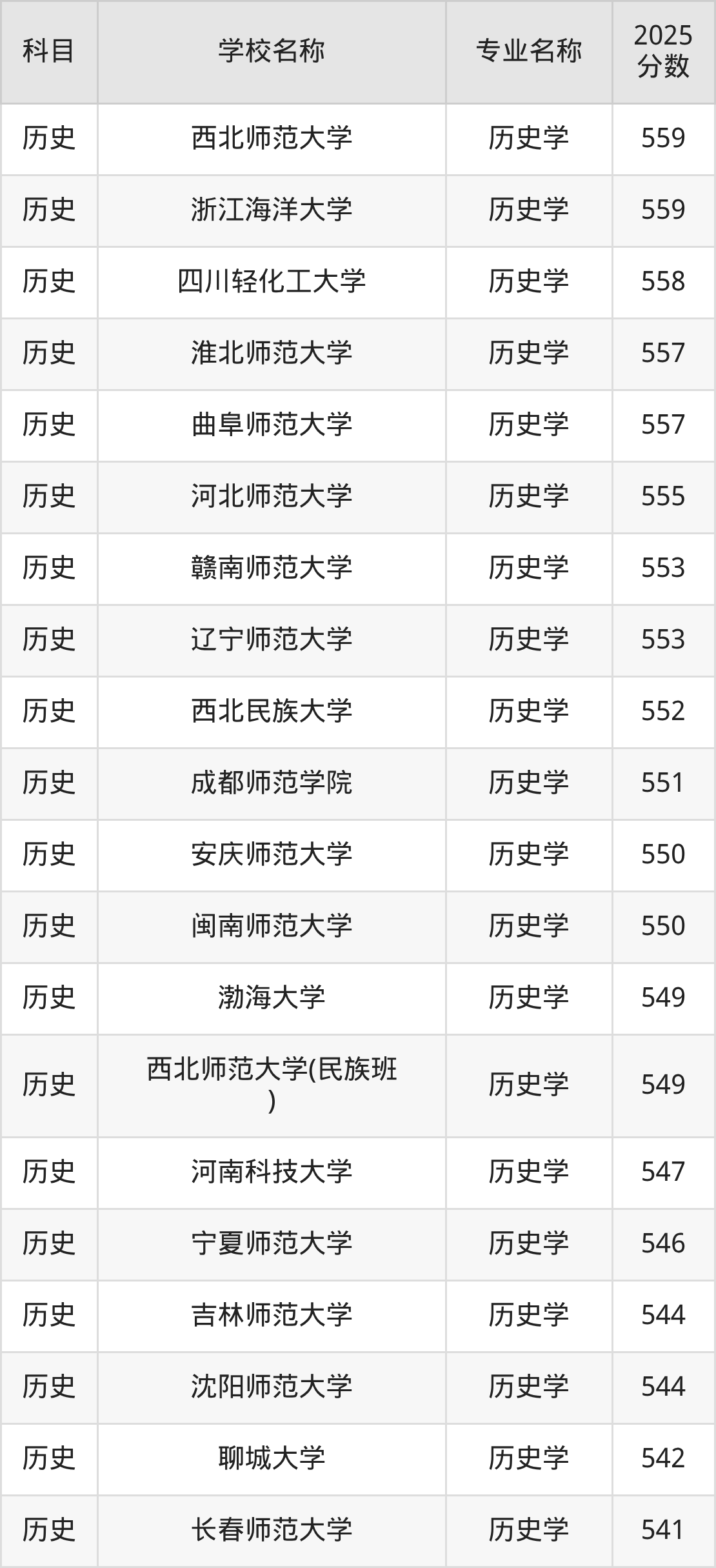 | 贵州师范大学 | 历史学(师范类) | 558 |