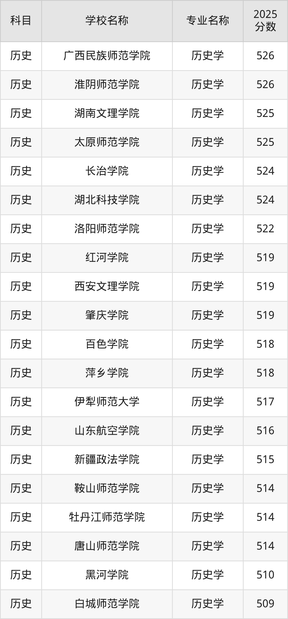 | 铜仁学院 | 历史学(师范类) | 522 |