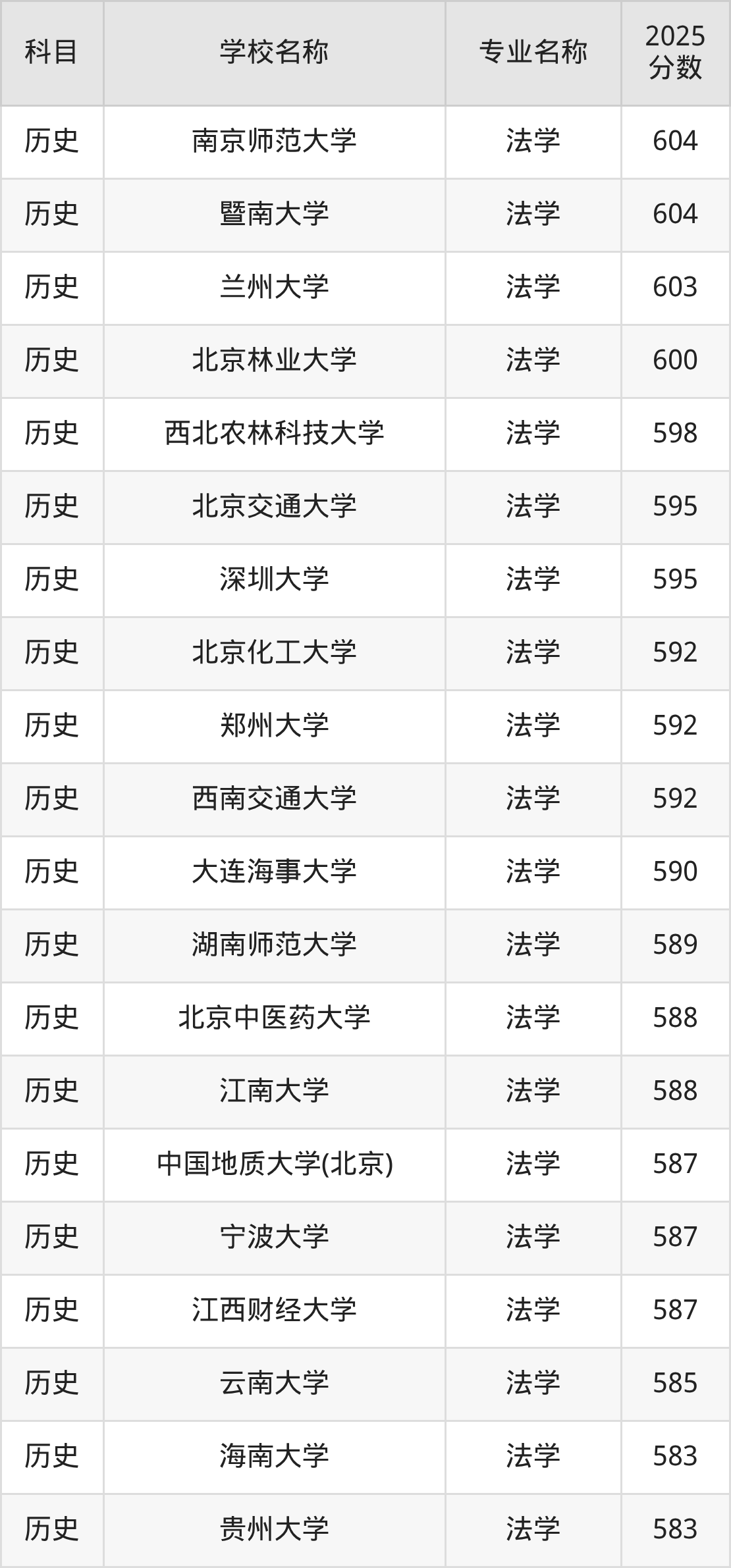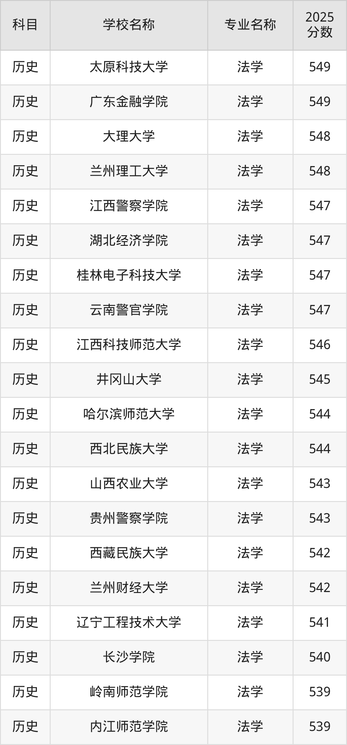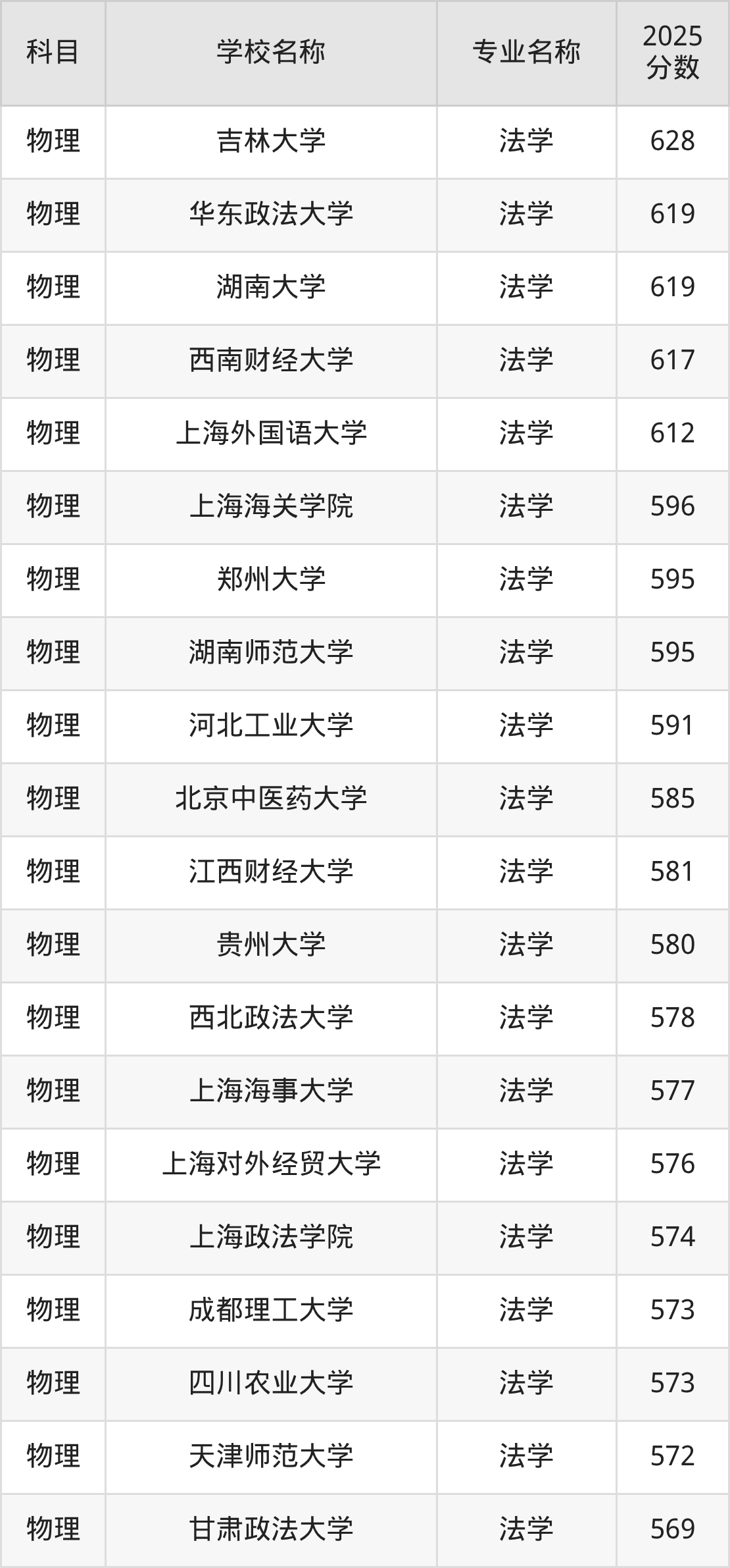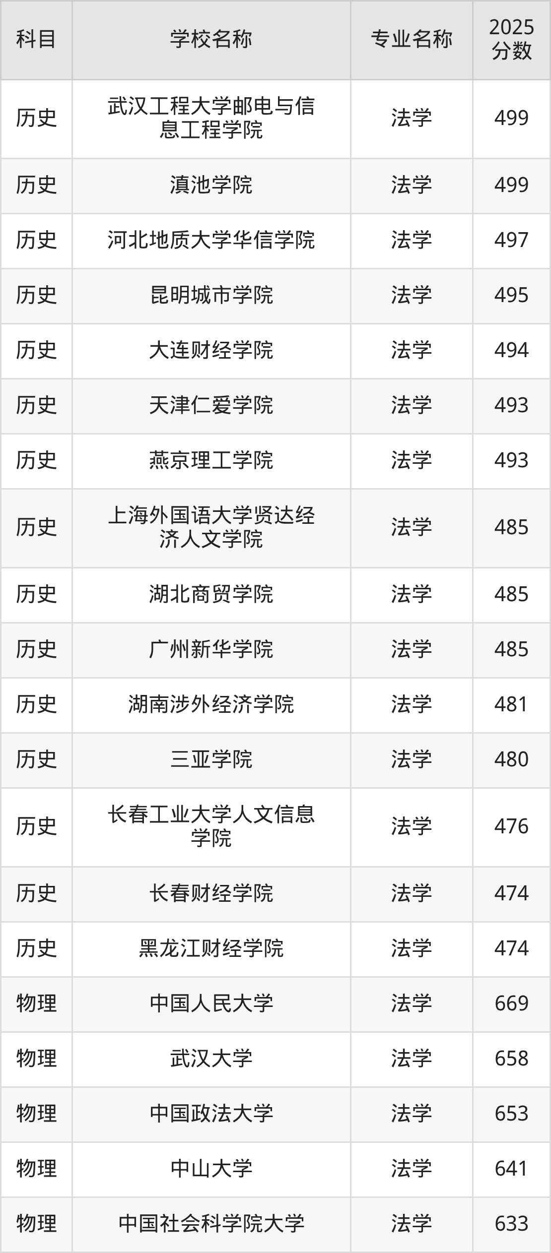 | 学校名称 | 专业名称 | 2025 分数 |