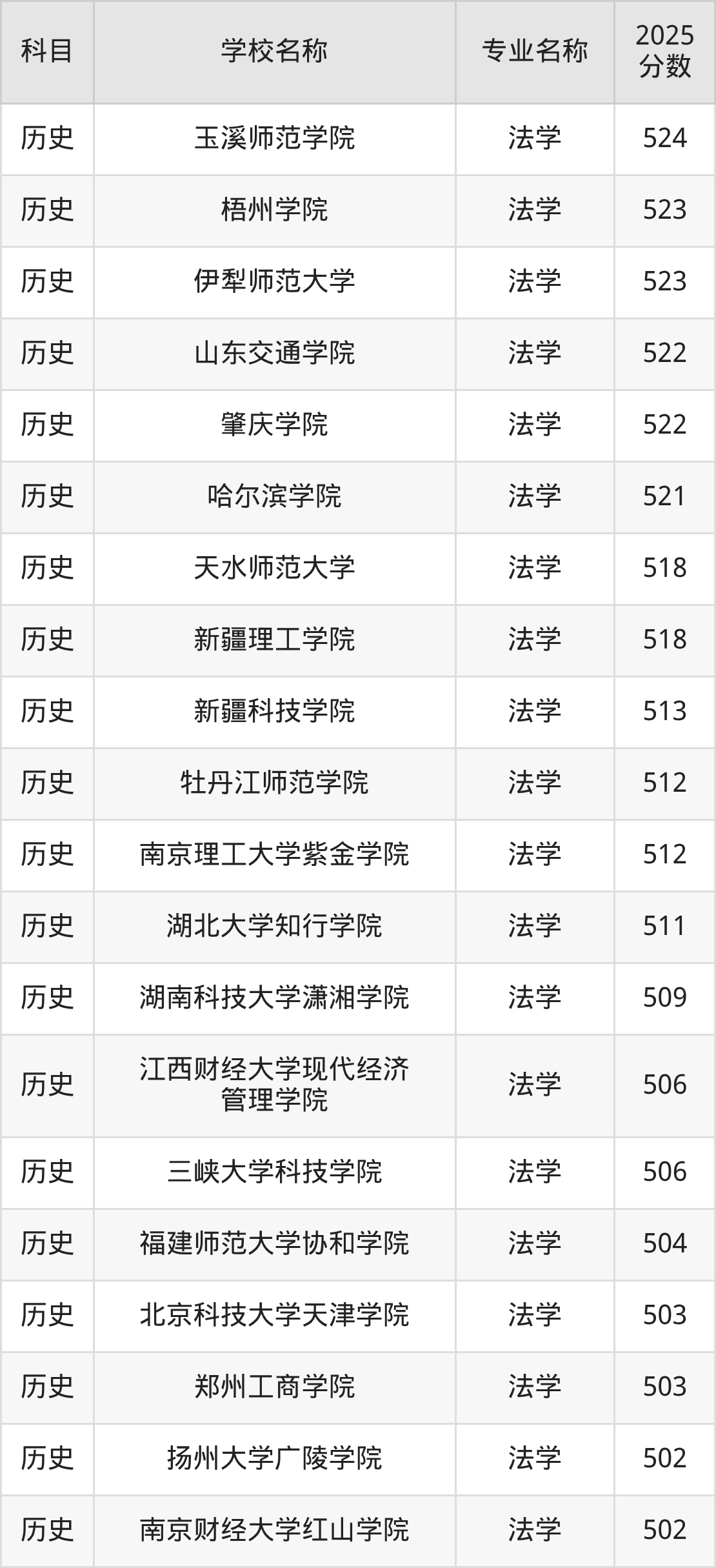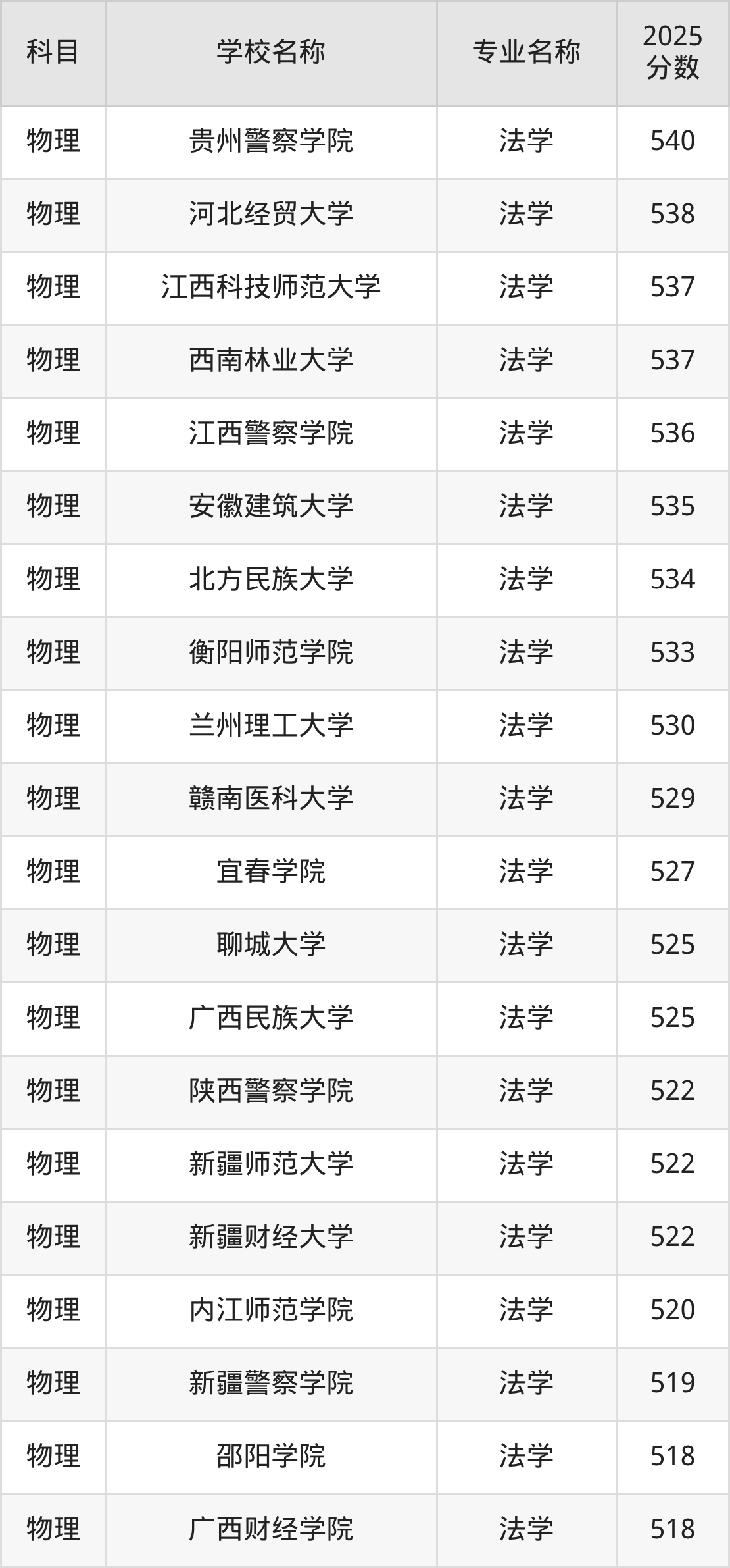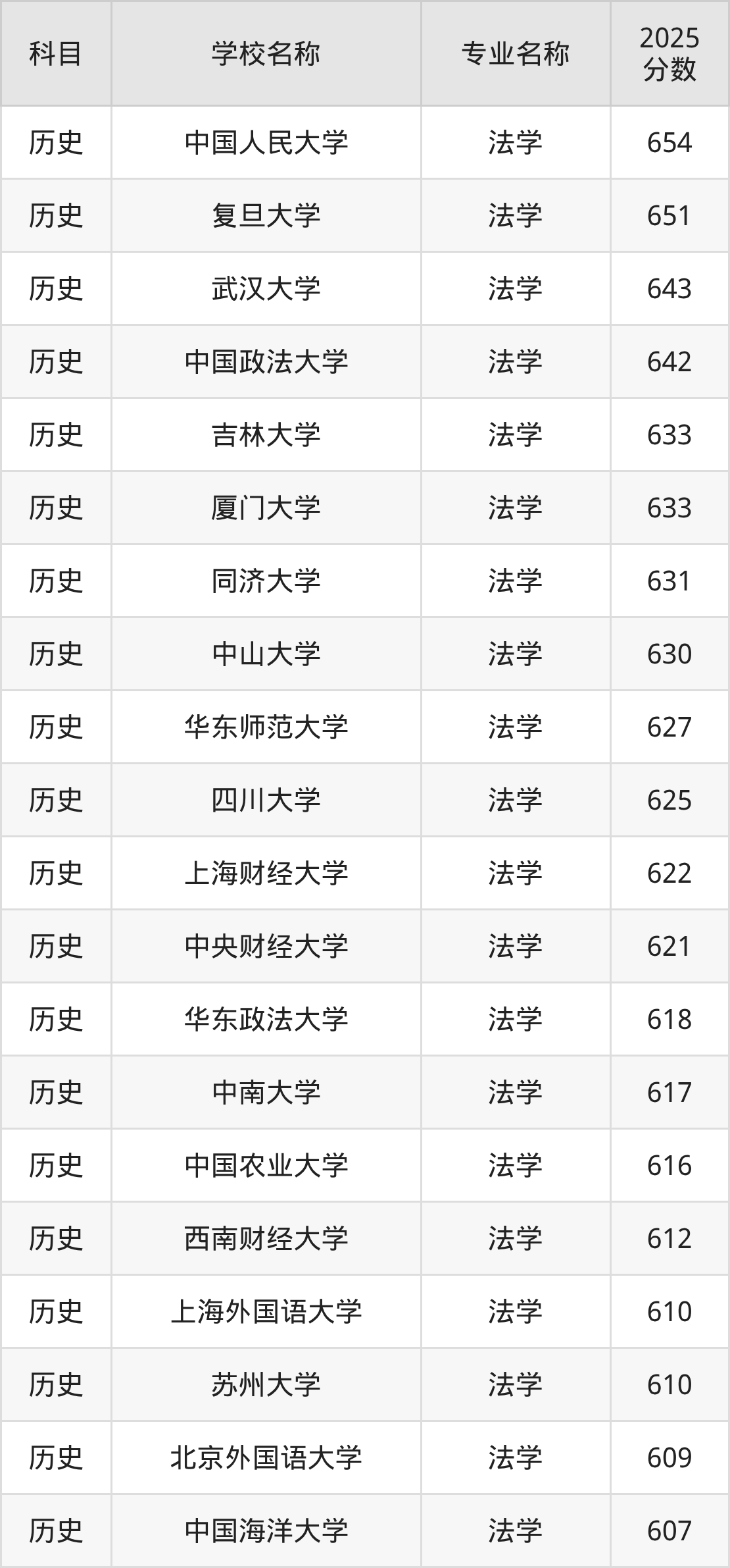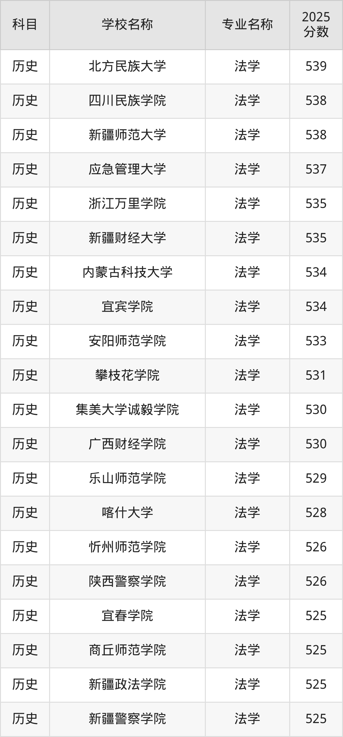 | 学校名称 | 专业名称 | 2025 分数 |