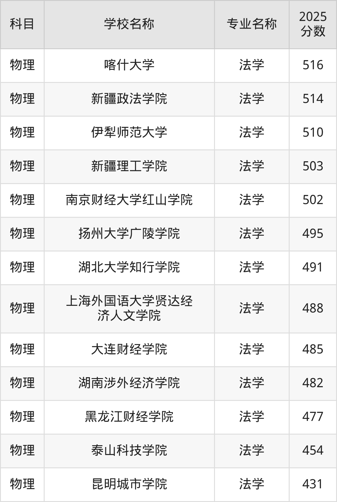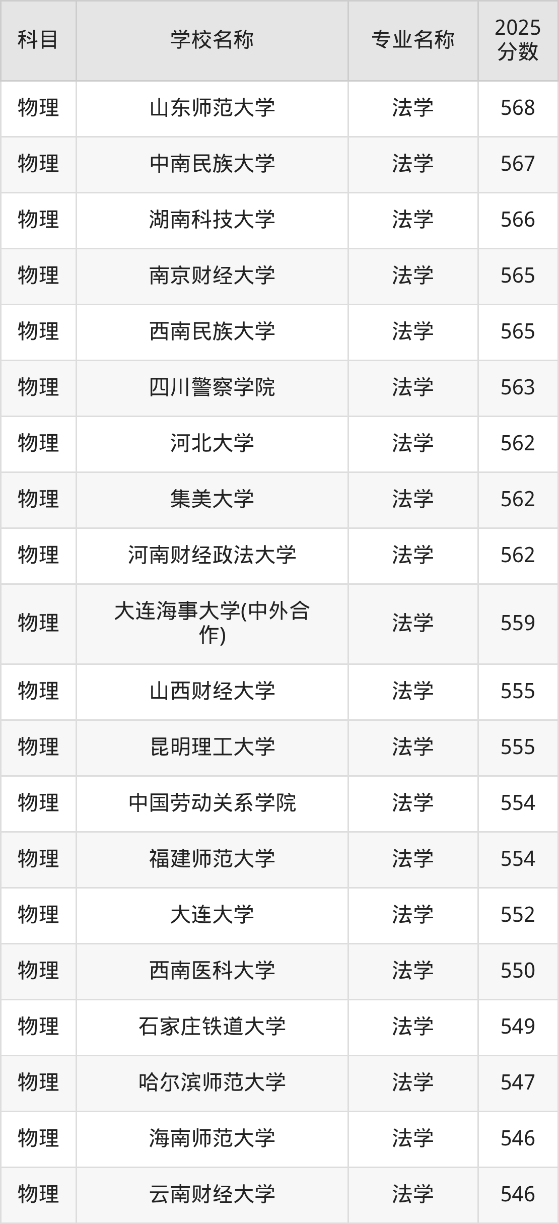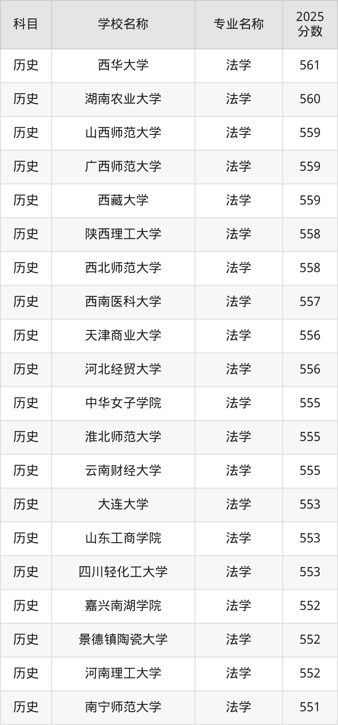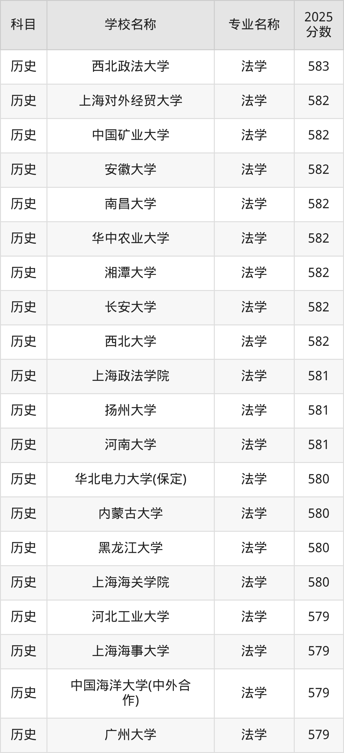 | 学校名称 | 专业名称 | 2025 分数 |