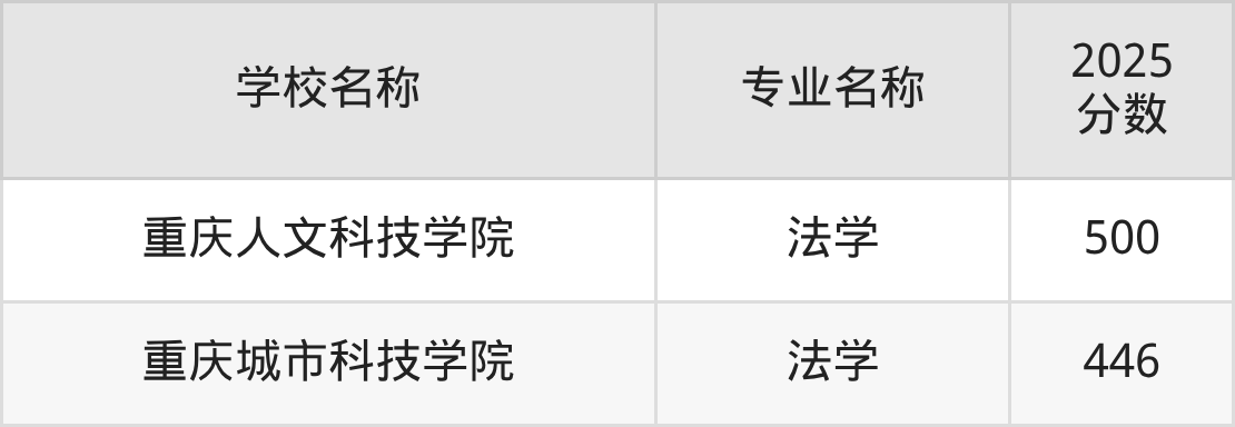 | 重庆城市科技学院 | 法学 | 481 |