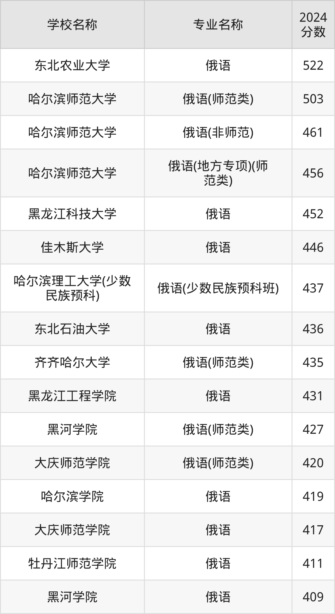 圆梦小编根据黑龙江2024年高考历史组专业分,将开设了俄语专业且位于黑龙江省内的大学按照“录取分”从高到低排序,得出了以上榜单。