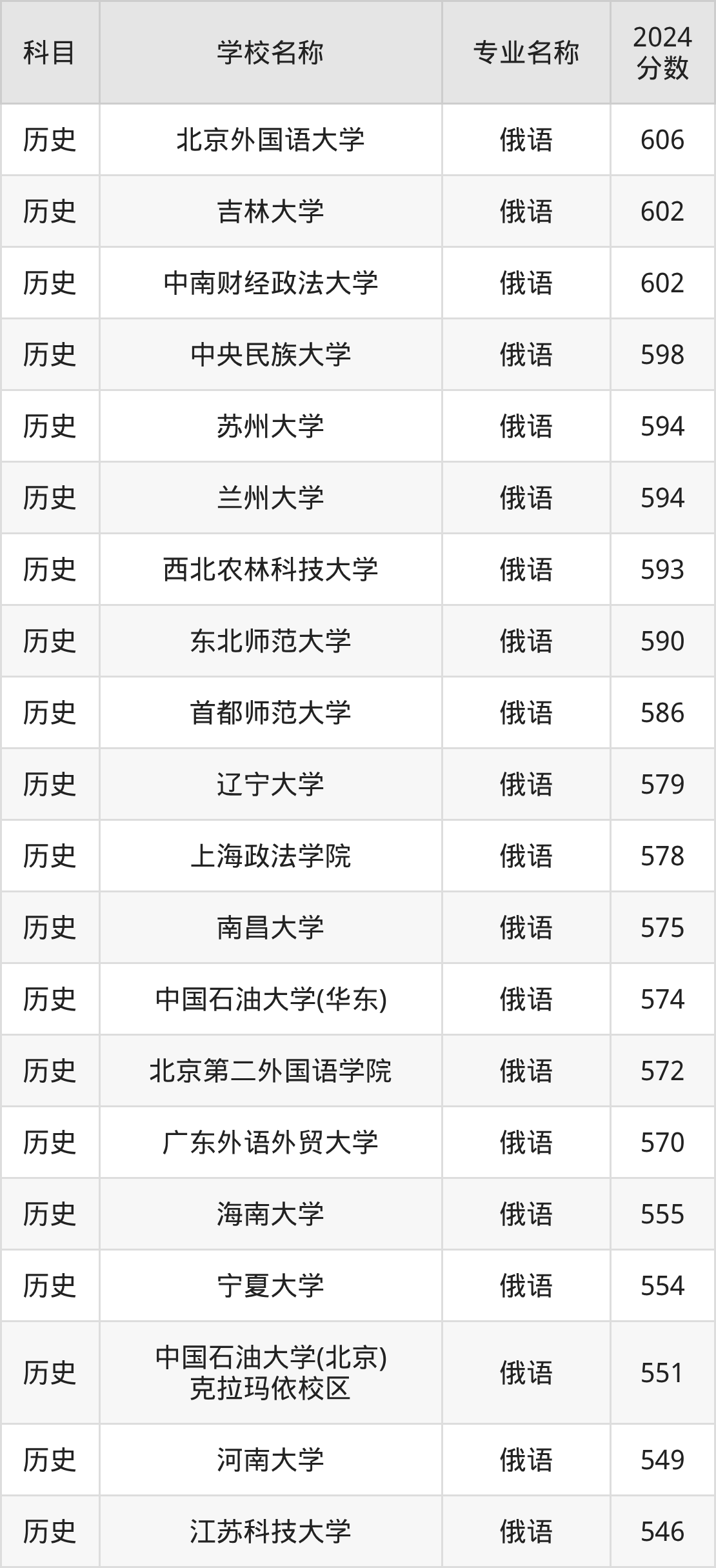 黑龙江高考历史组:俄语专业的最低分是405分~565分