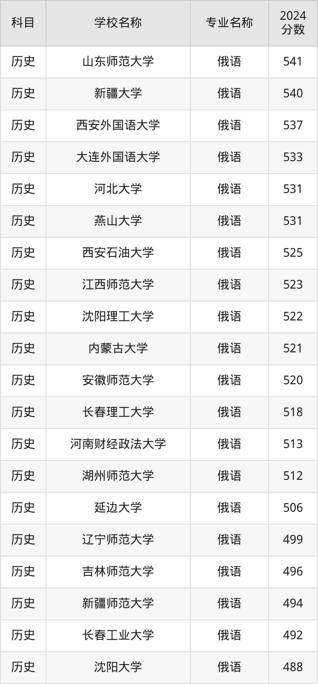 | 哈尔滨师范大学 | 俄语(师范类) | 528 |