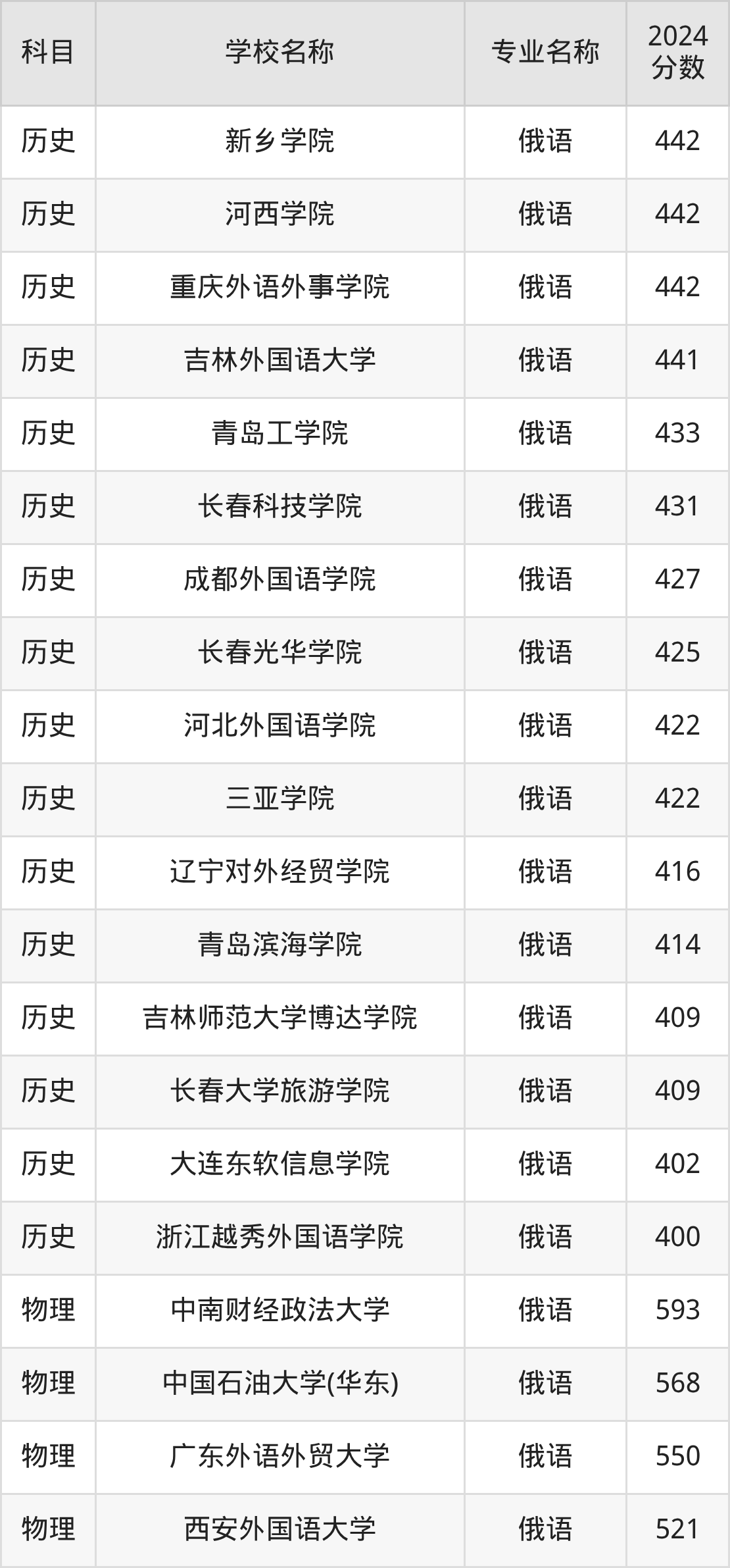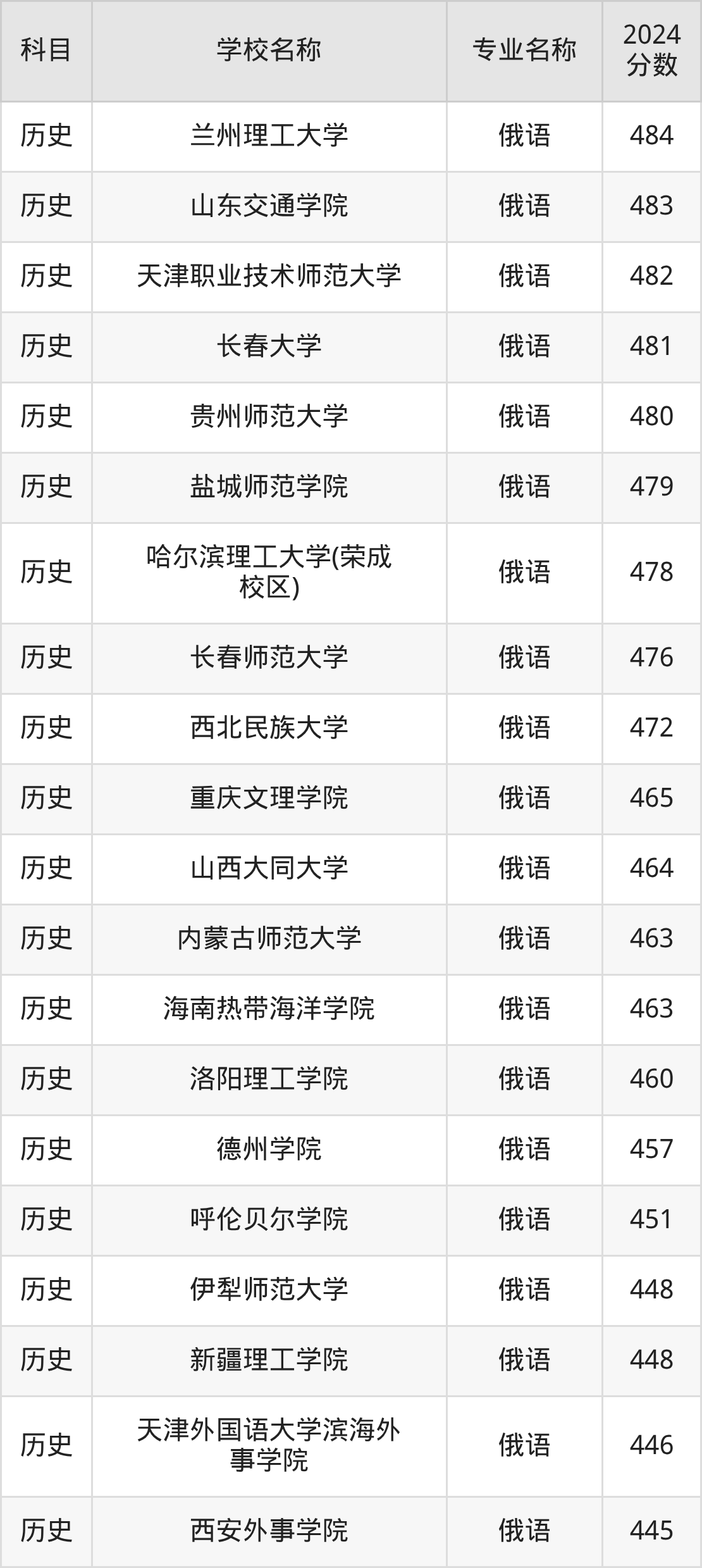 | 黑河学院 | 俄语(中外合作) | 449 |