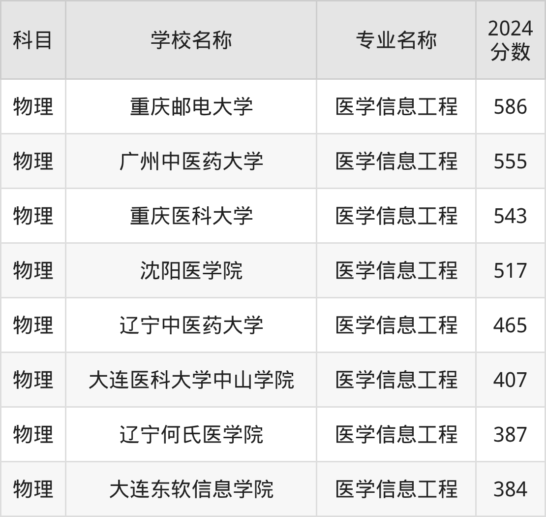 | 黑龙江中医药大学 | 医学信息工程 | 466 |