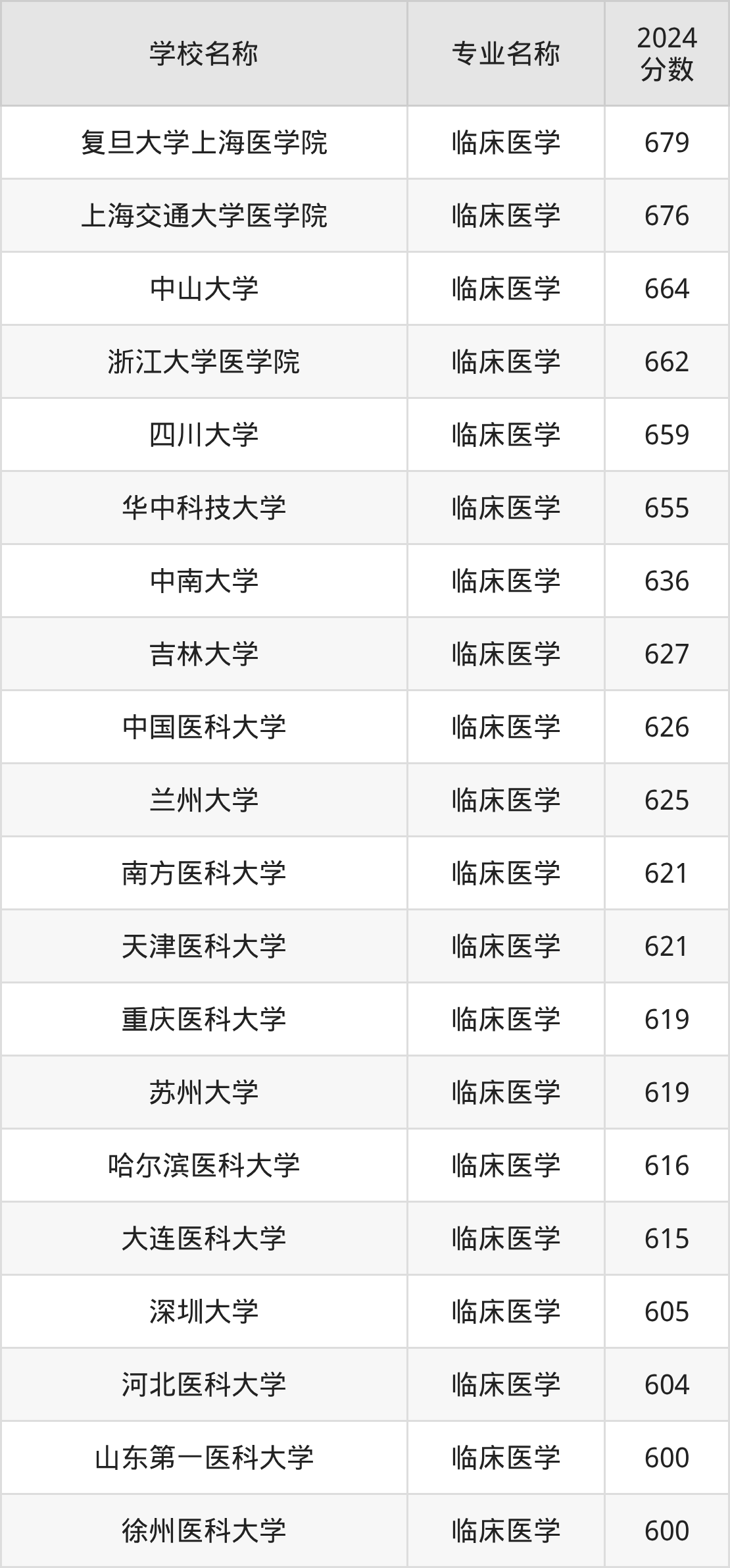 | 首都医科大学 | 临床医学 | 625 |