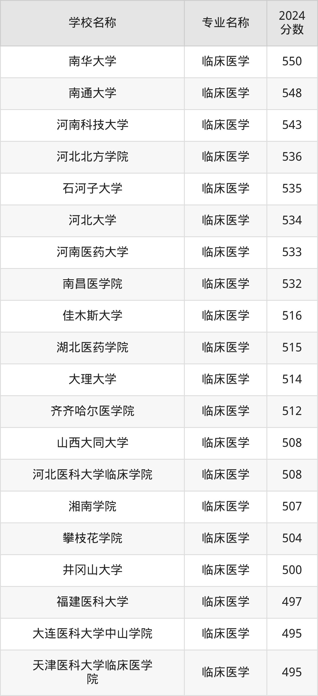 一、北京临床医学专业大学排名及分数线