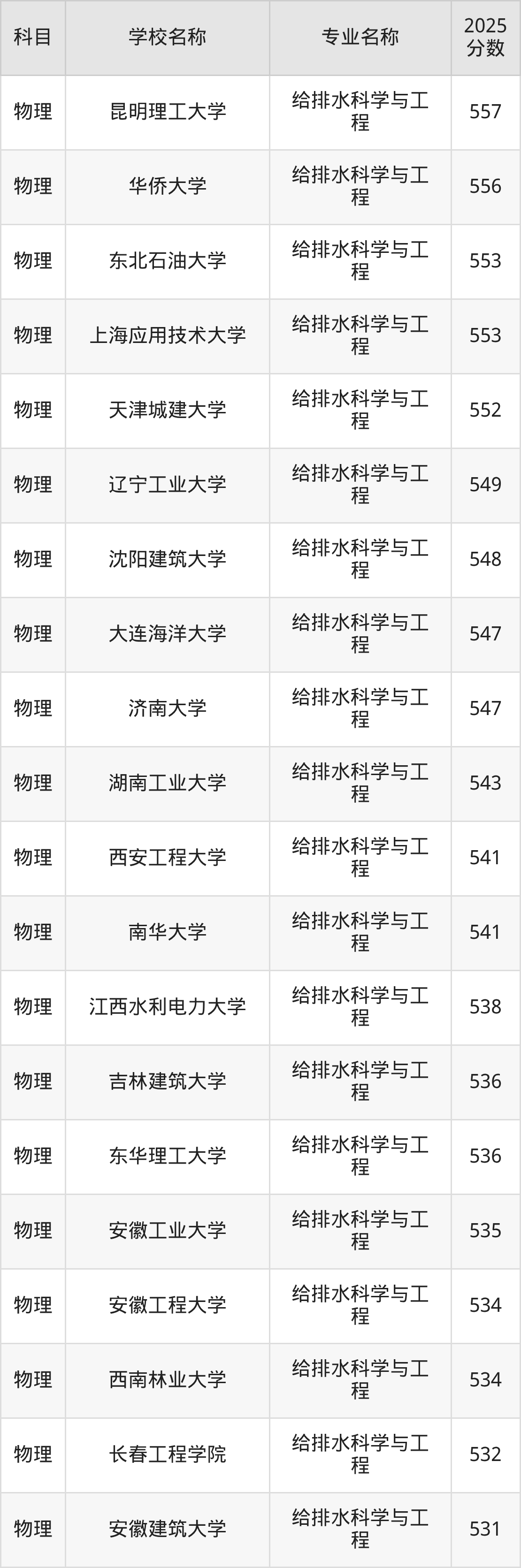 | 华北理工大学 | 给排水科学与工 程 | 537 |