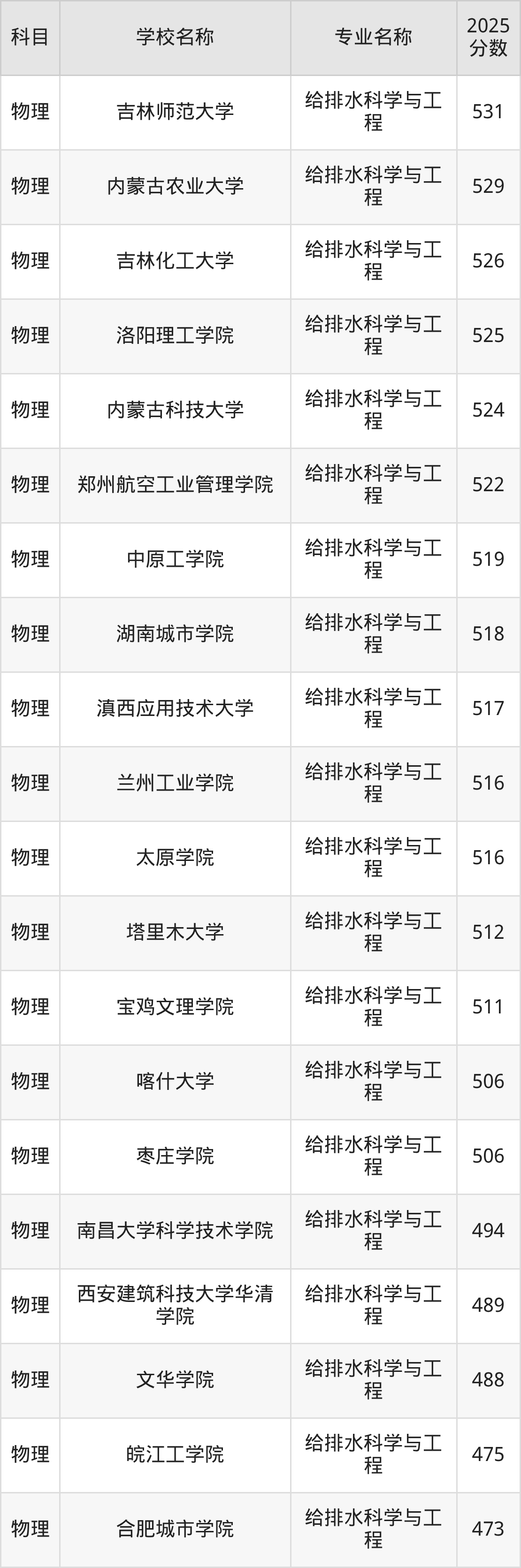 下文将为大家展示河北省大学给排水科学与工程专业2025年在河北高考的最低录取分数线!