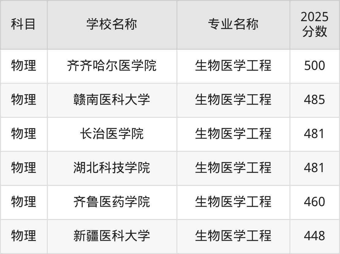 圆梦小编根据辽宁2025年高考物理组专业分,将开设了生物医学工程专业且位于辽宁省内的大学按照“录取分”从高到低排序,得出了以上榜单。