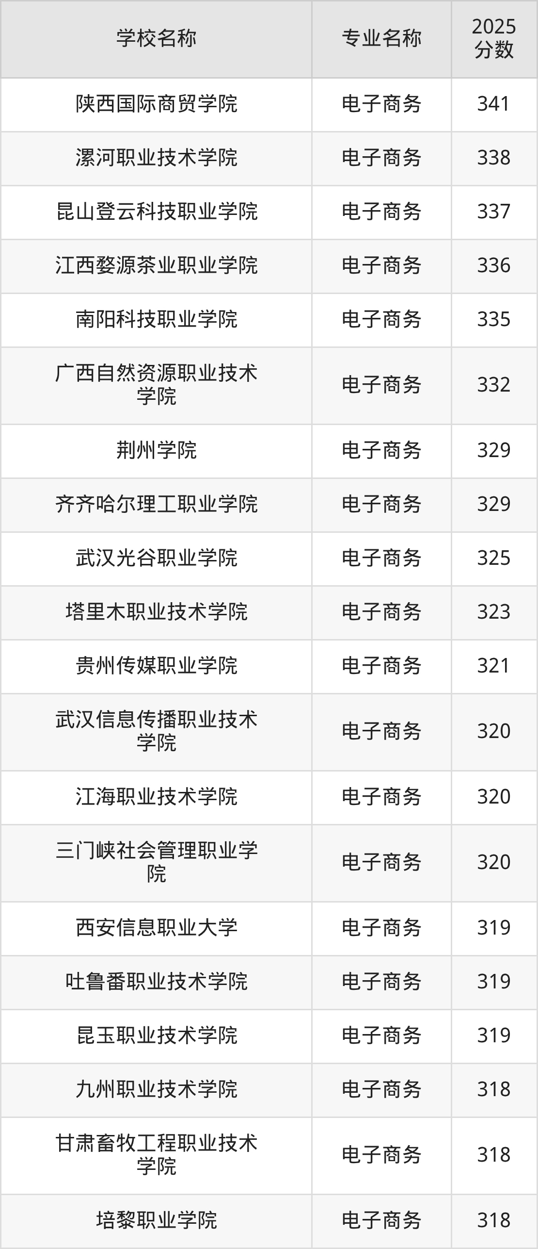 | 山东轻工职业学院 | 电子商务 | 345 |