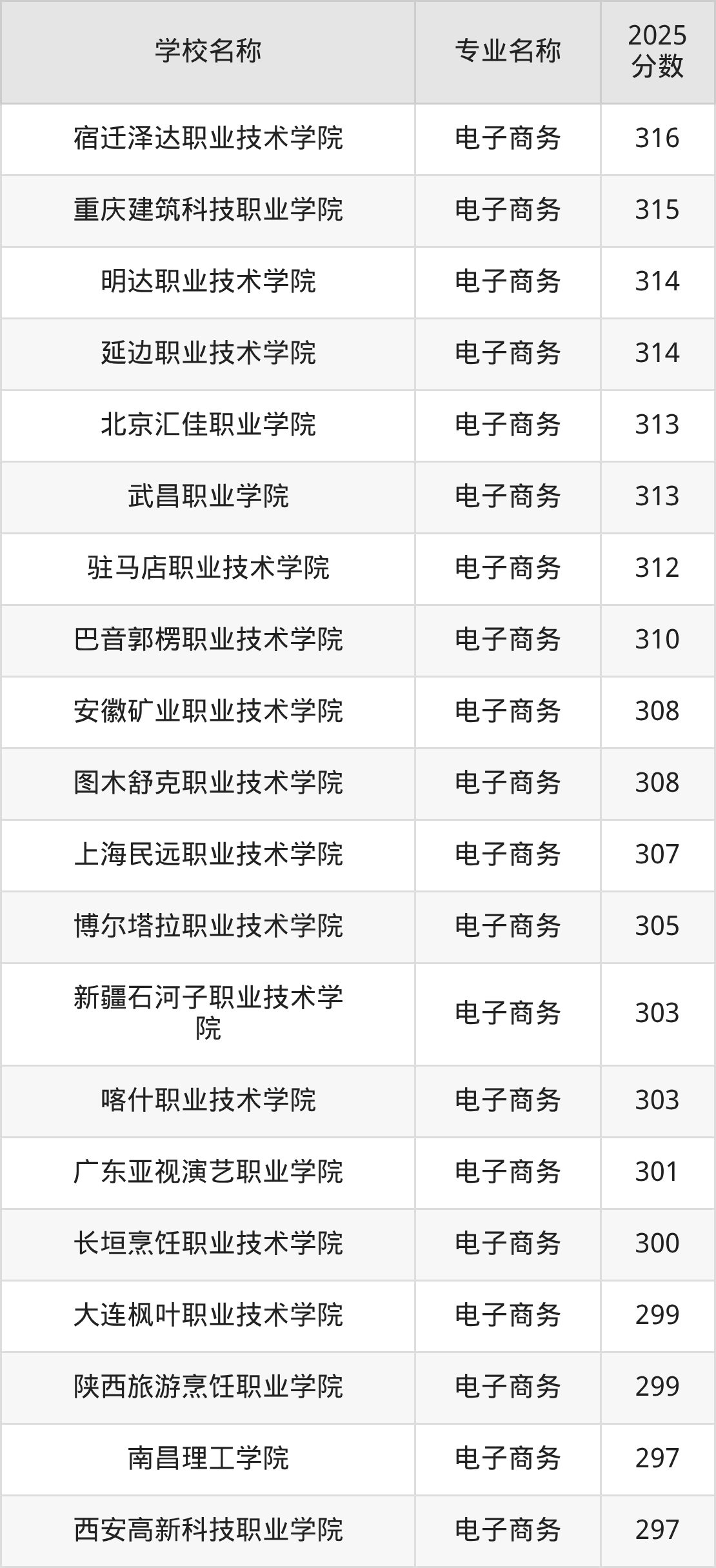 | 山东传媒职业学院 | 电子商务 | 411 |