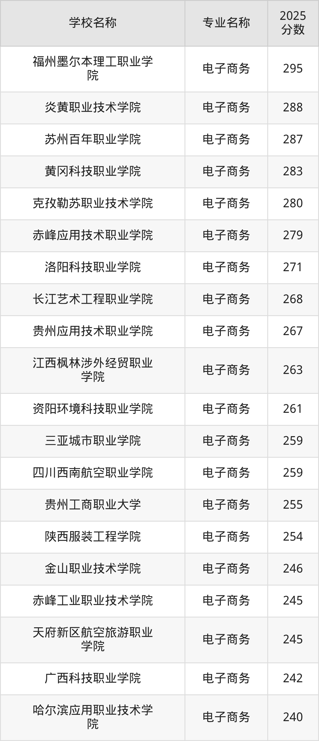 | 潍坊工商职业学院 | 电子商务 | 255 |