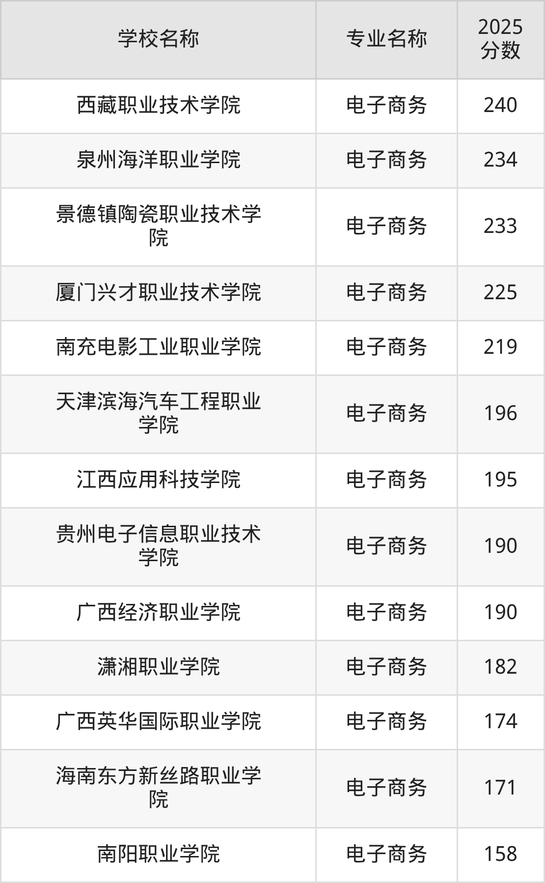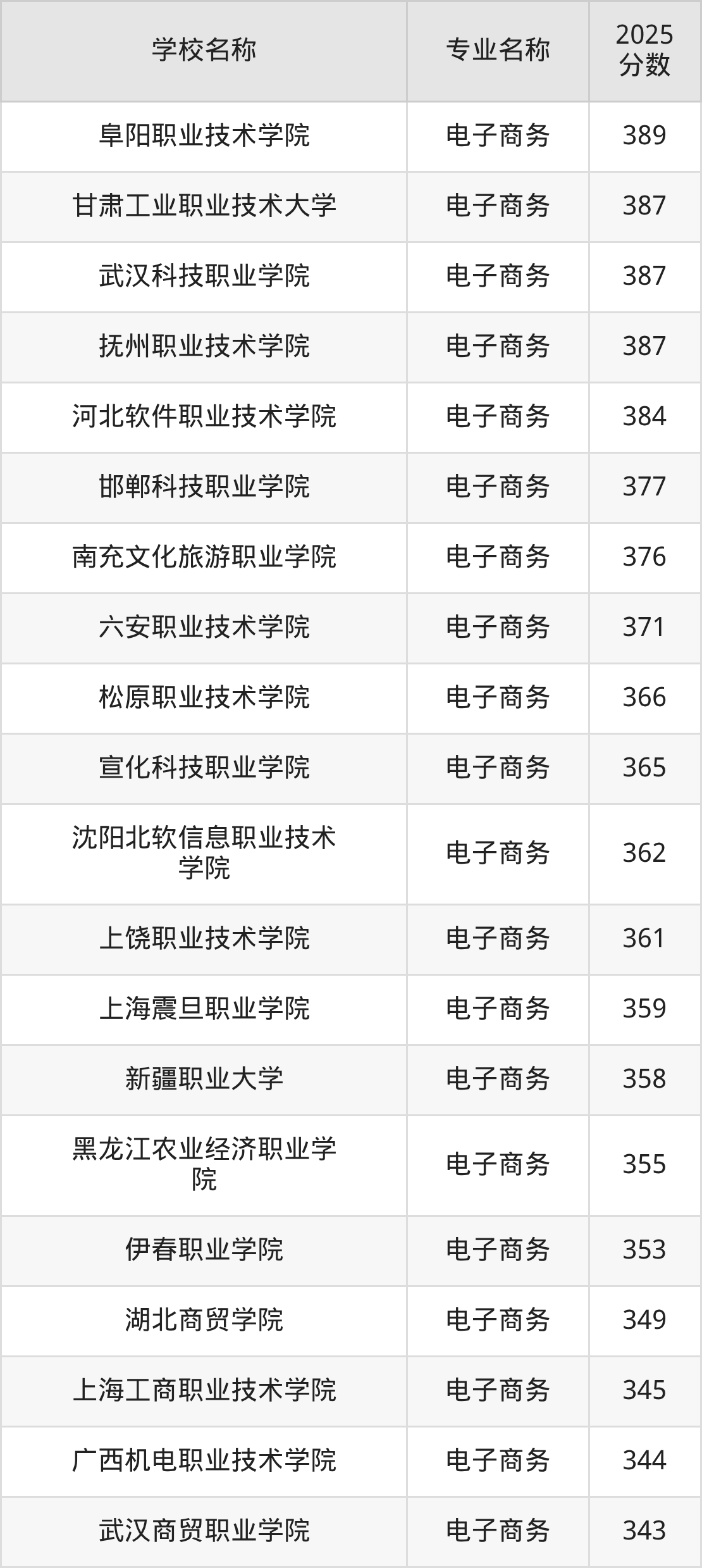 | 山东胜利职业学院 | 电子商务 | 355 |