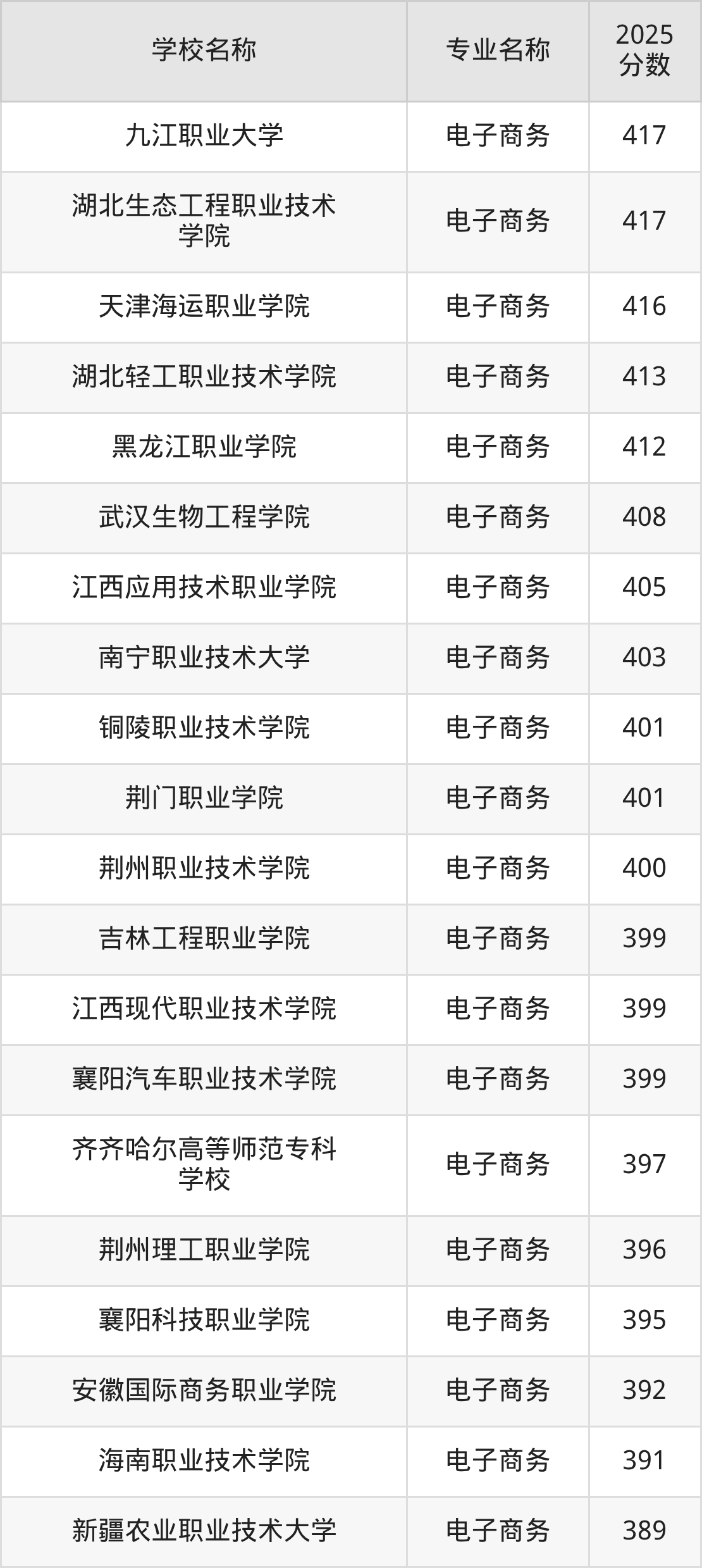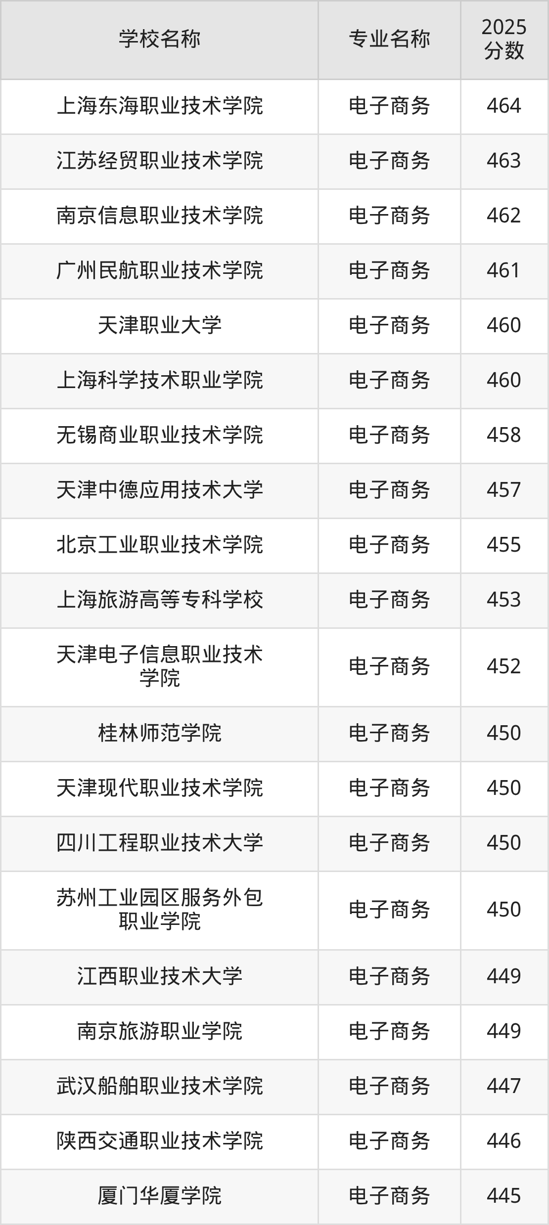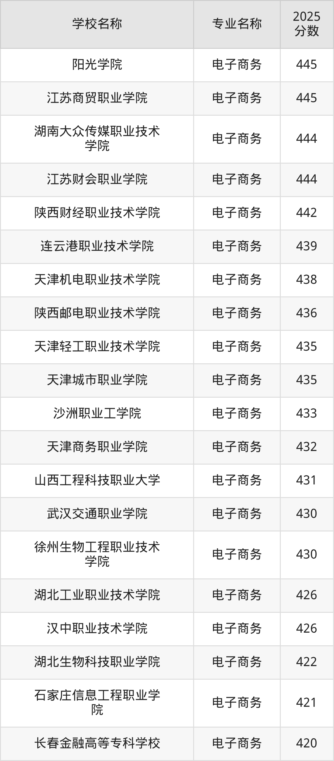 | 山东商业职业技术学院 | 电子商务 | 445 |