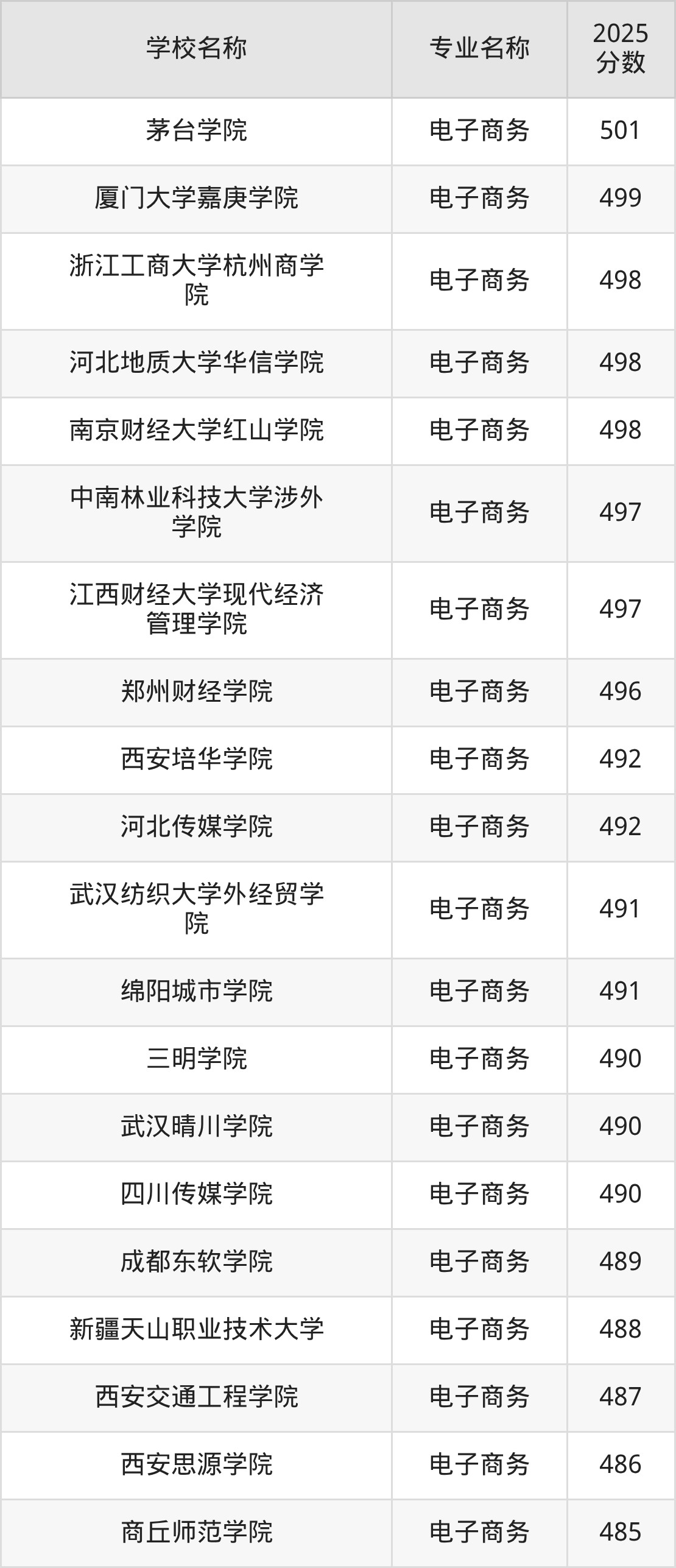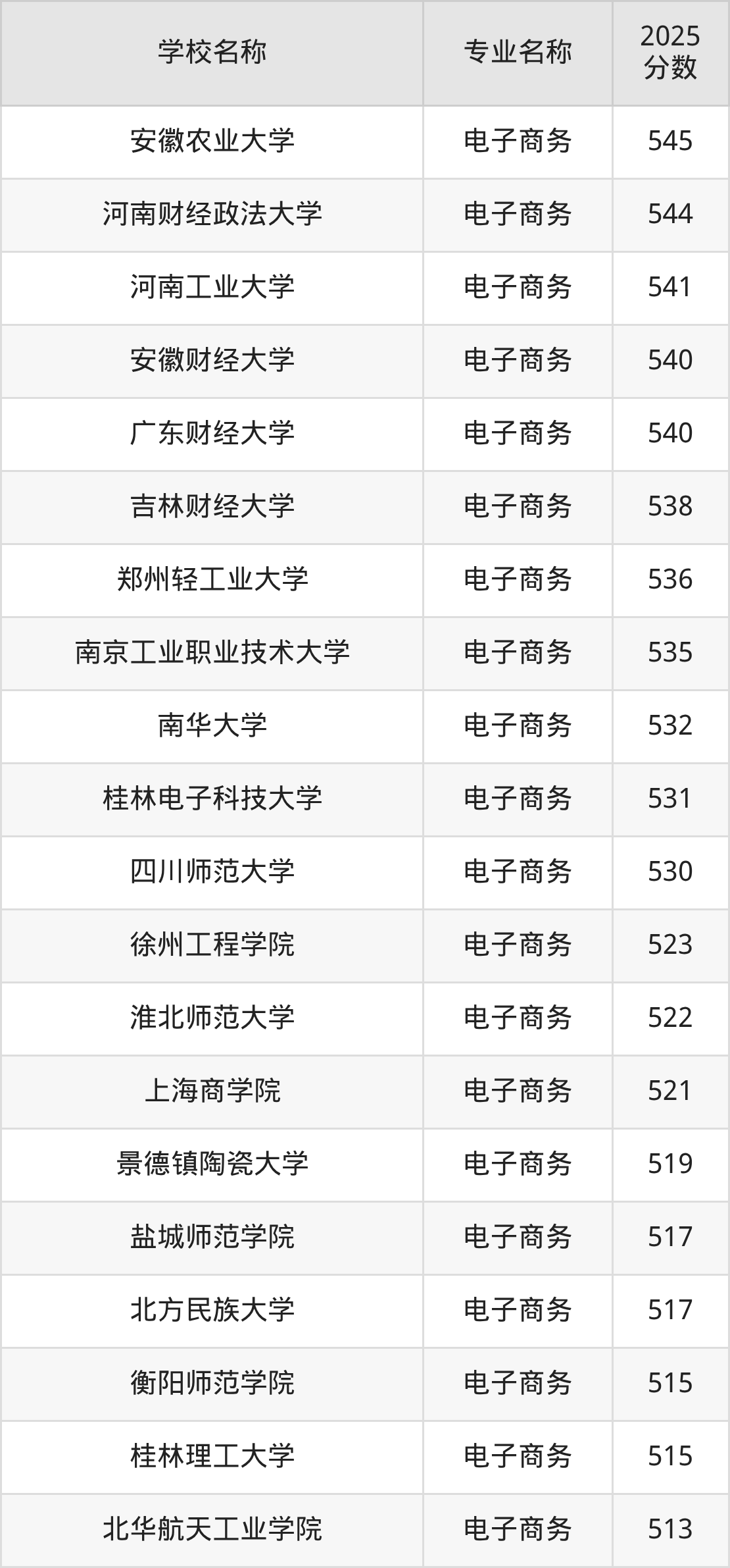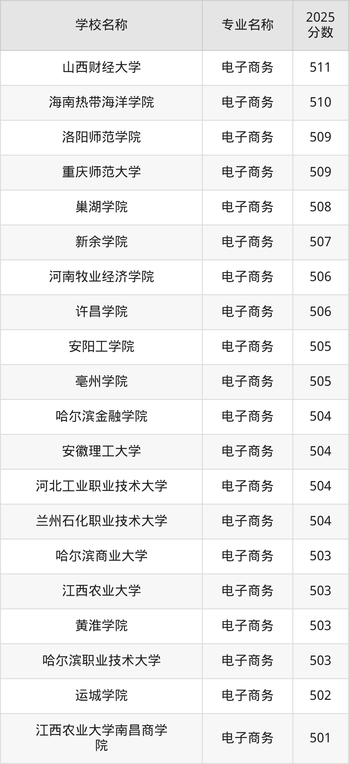 | 山东商业职业技术学院 | 电子商务 | 445 |
